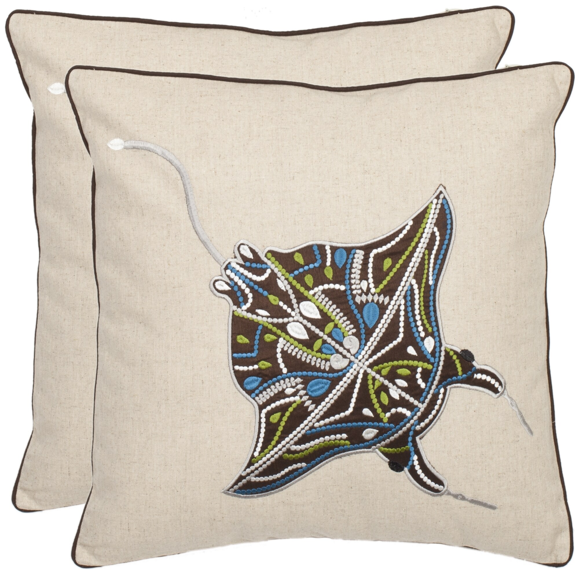 SAFAVIEH Stingray 18-inch Cream/ Brown Decorative Pillows (Set of 2)
