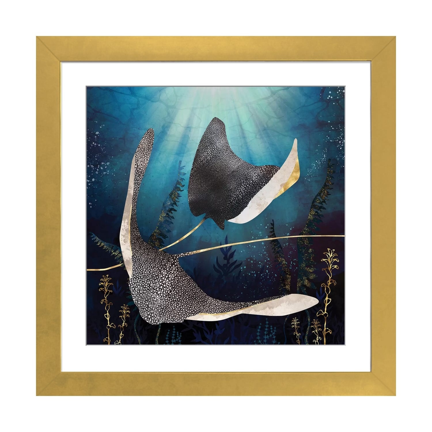 Stupell Stingray Aquatic Animal Ocean Blue Spotted Sea Creature Framed Wall Art