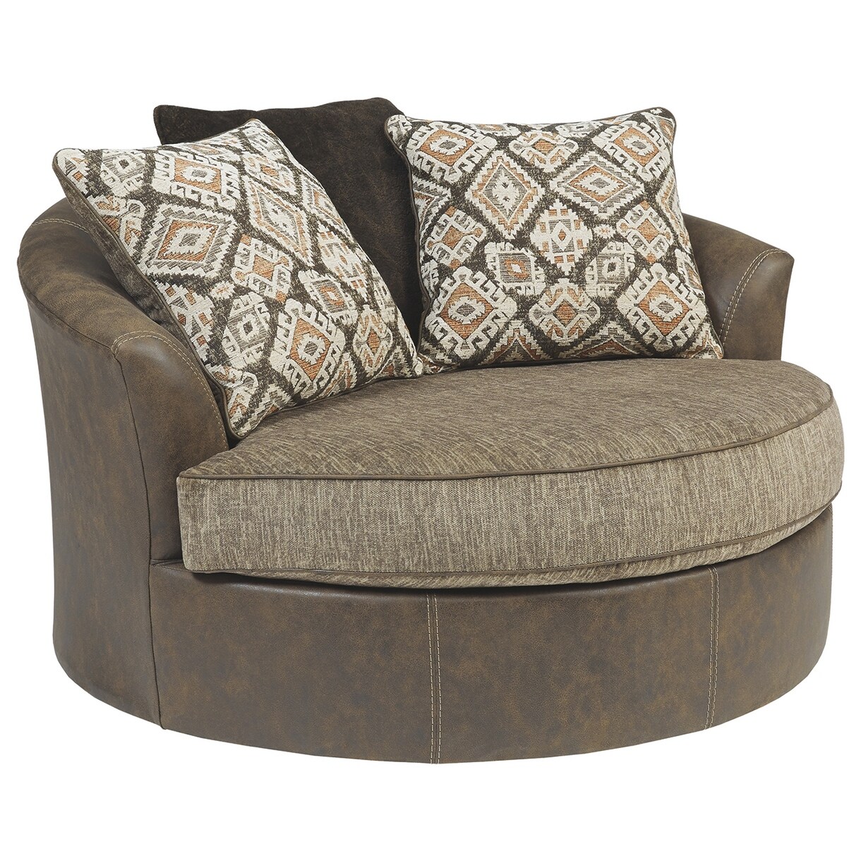 Leatherette Upholstered Round Oversized Swivel Chair, Brown