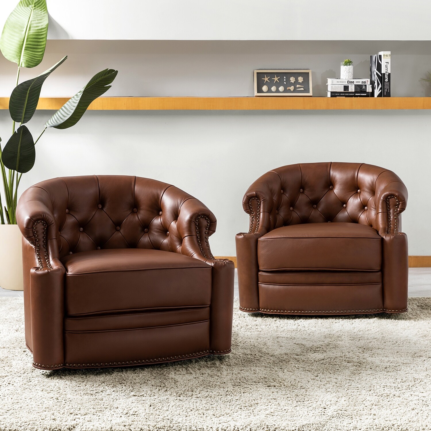 Pascual Classic Genuine Leather Swivel Chair With Nailhead Trim Arm Set of 2 By HULALA HOME