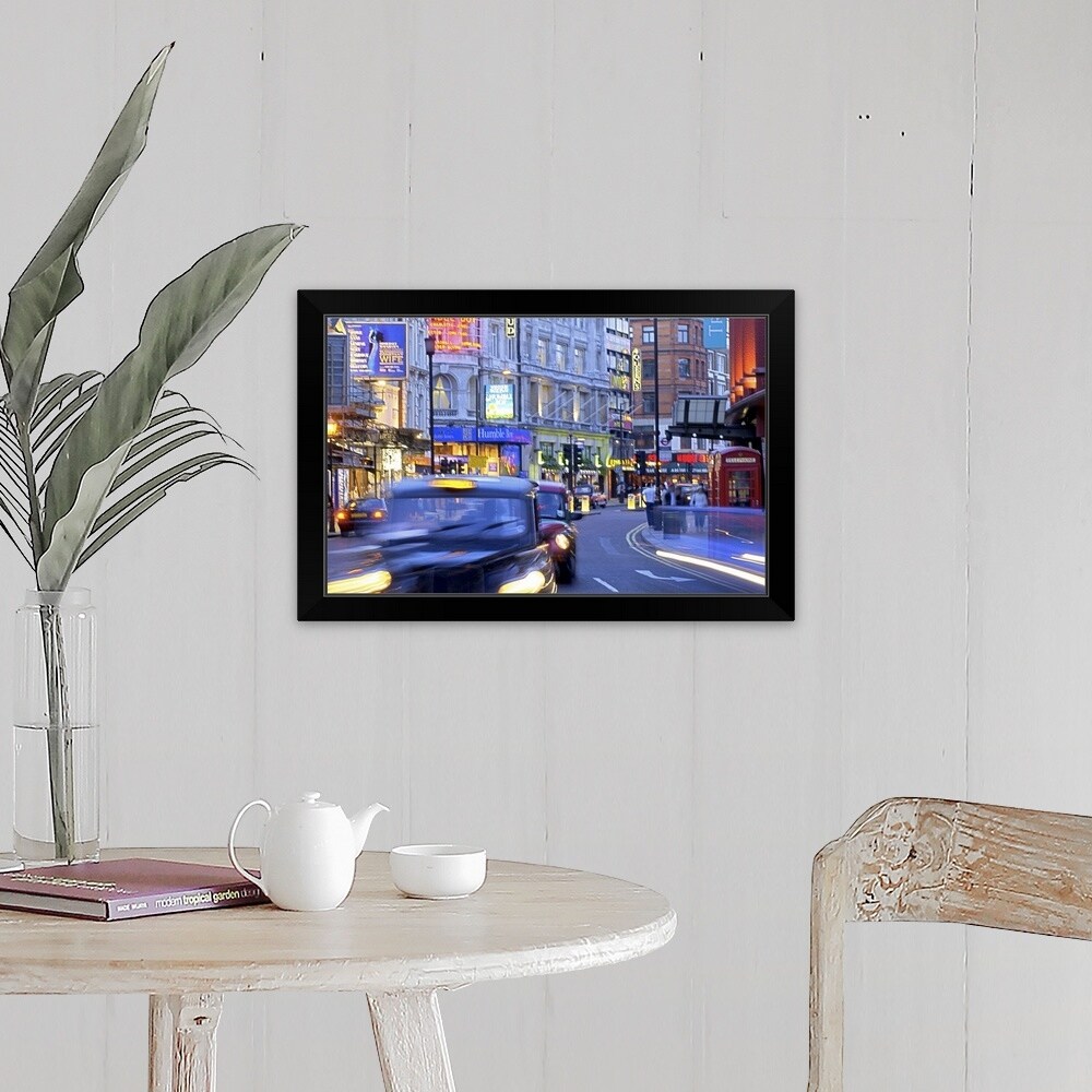 "Taxi in motion, London" Black Float Frame Canvas Art