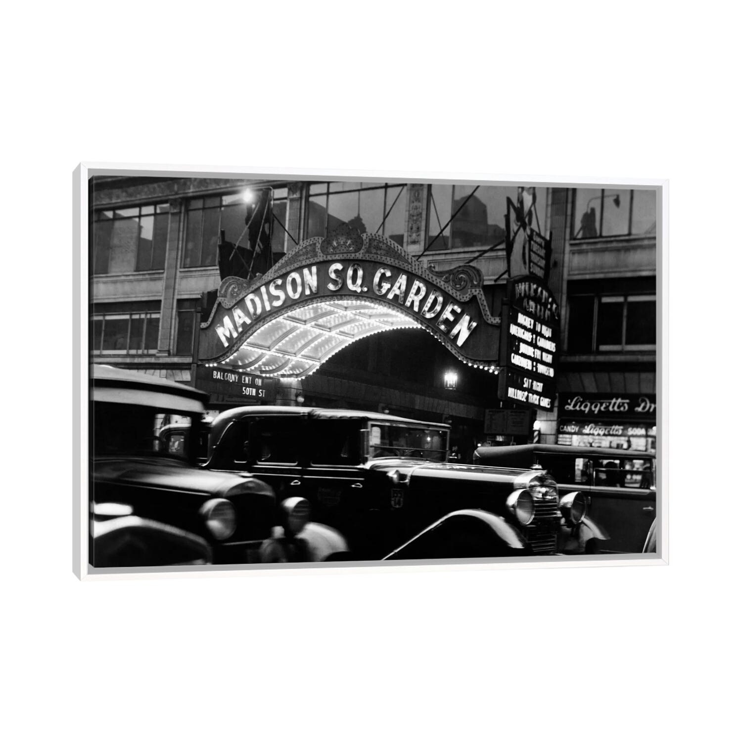 iCanvas "1920s-1930s Cars Taxis Madison Square Garden Marquee At Night Manhattan" by Vintage Images Framed Canvas Print