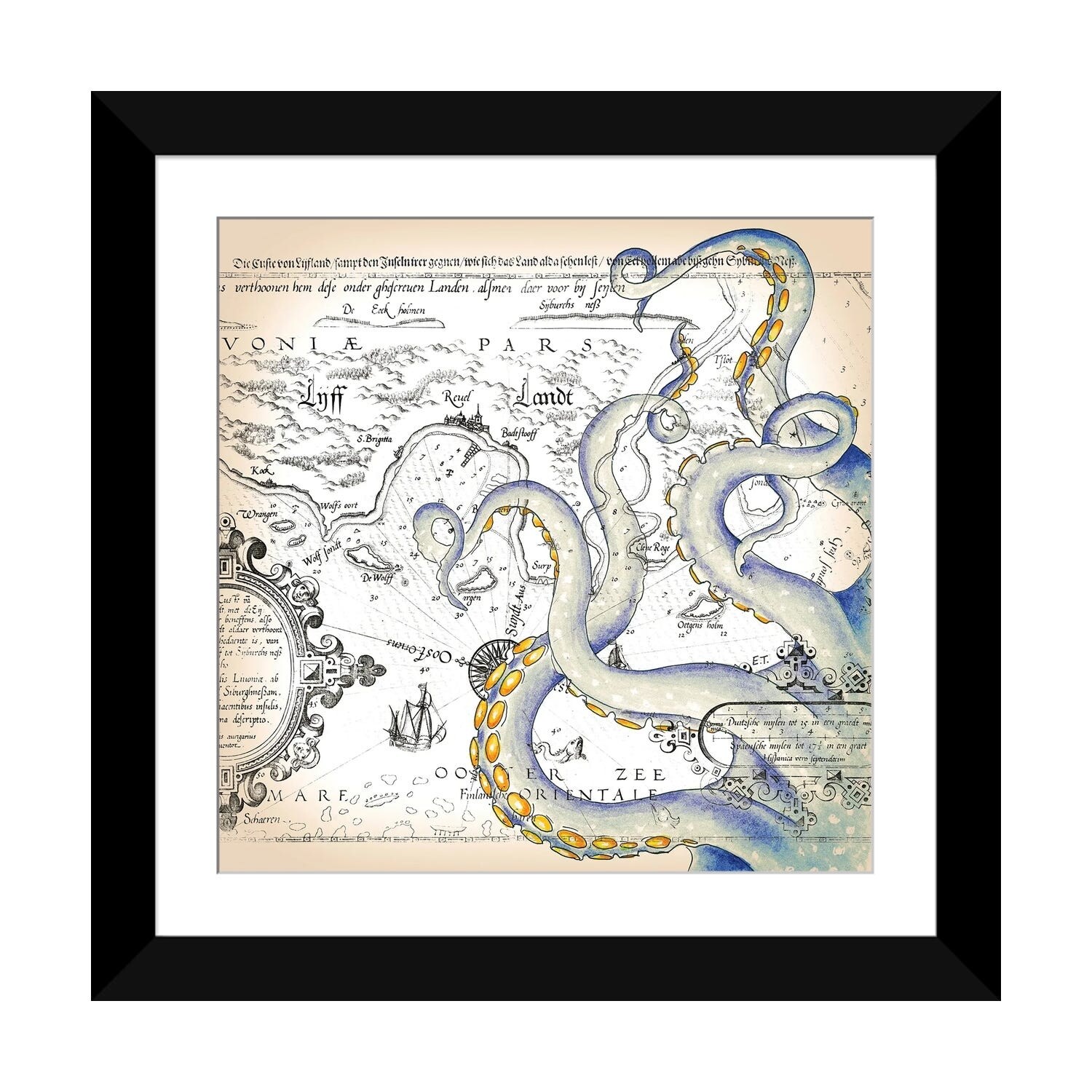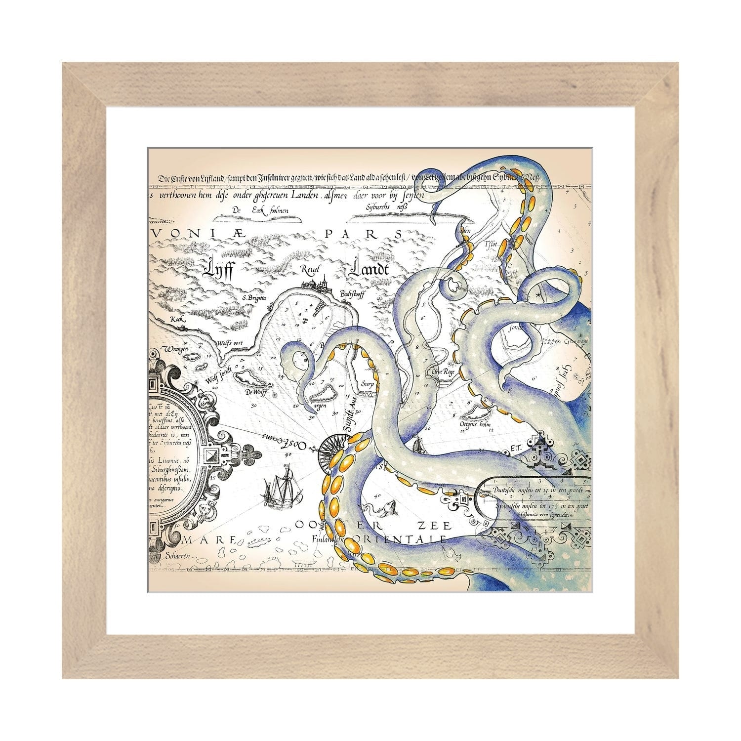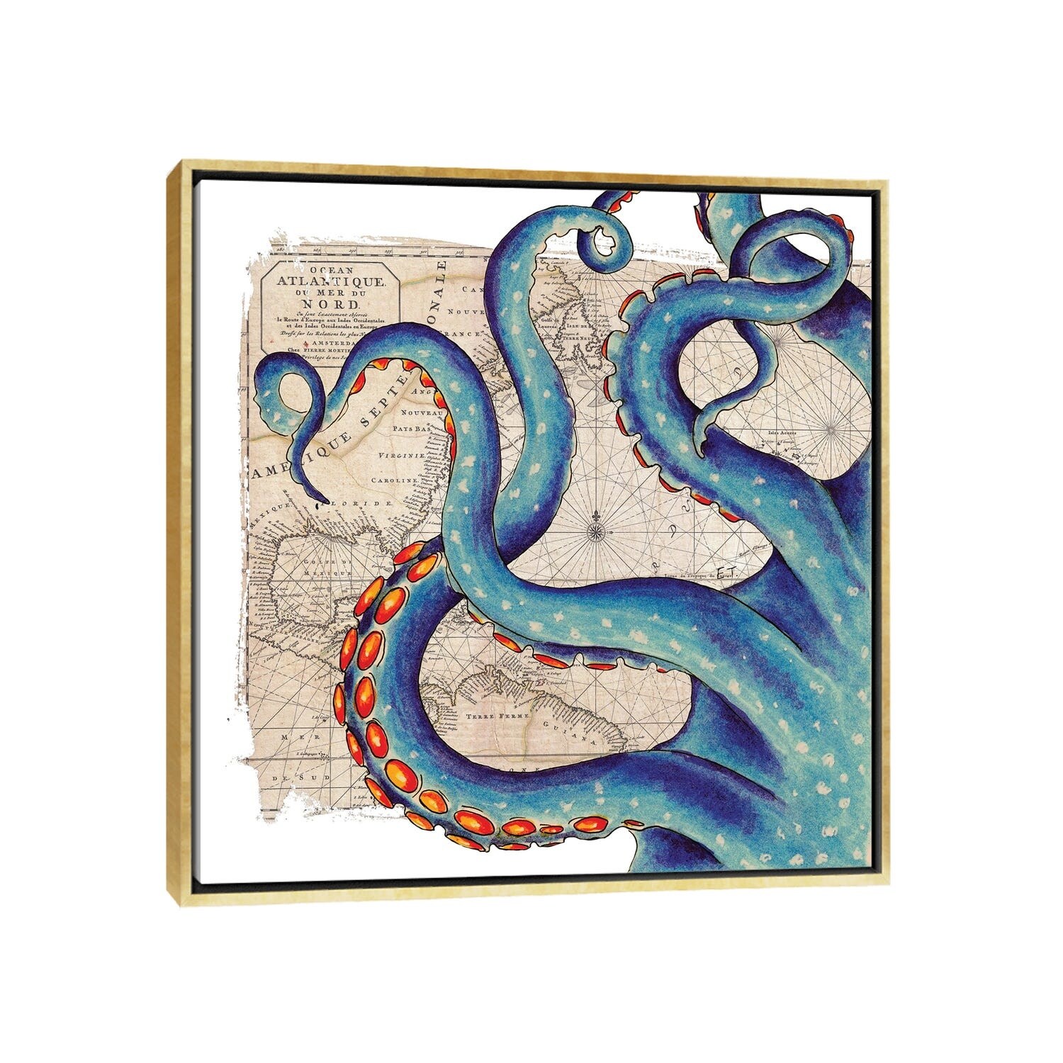 iCanvas "Blue Tentacles Vintage Map Nautical" by Seven Sirens Studios Framed Canvas Print