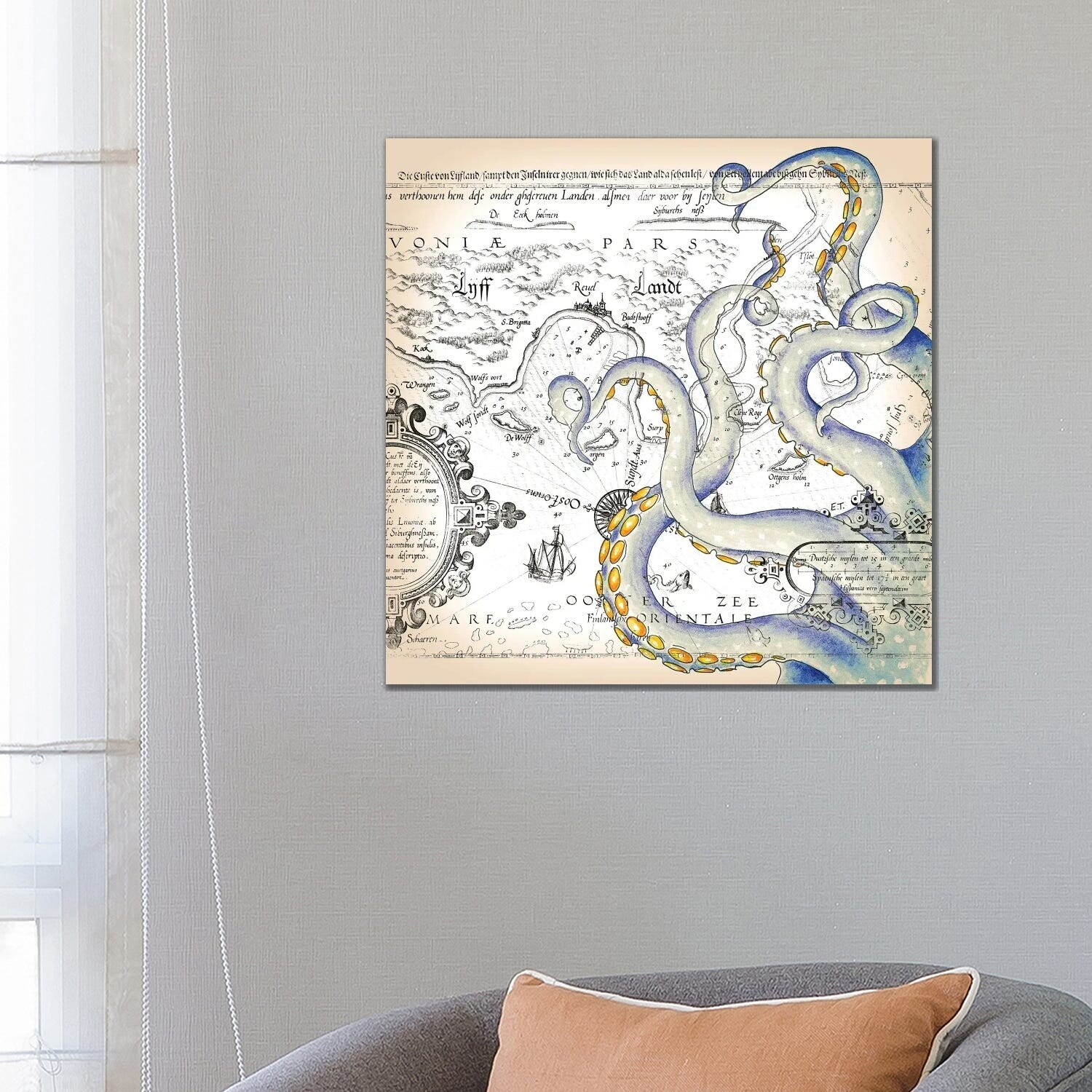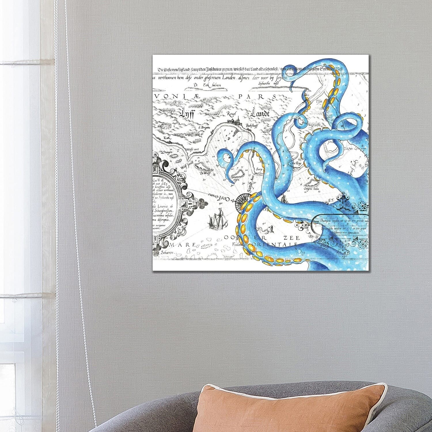 iCanvas "Tentacles Octopus Blue Watercolor Nautical Map" by Seven Sirens Studios