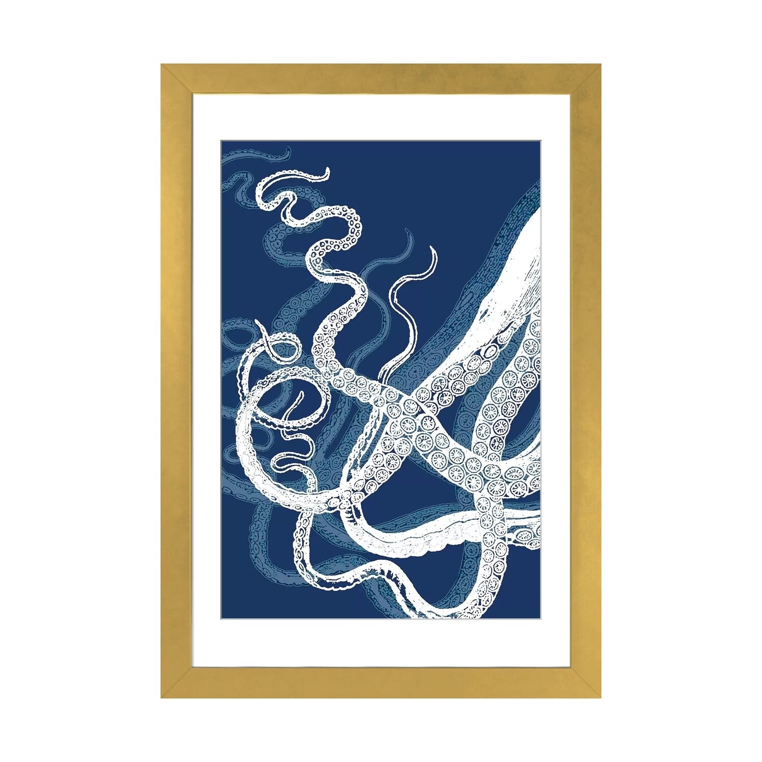 iCanvas "White Tentacles Octopus Blue Ink" by Seven Sirens Studios Canvas Print