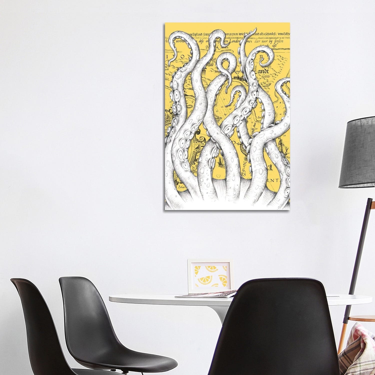 iCanvas "White Tentacles Octopus Yellow Vintage Map" by Seven Sirens Studios Canvas Print