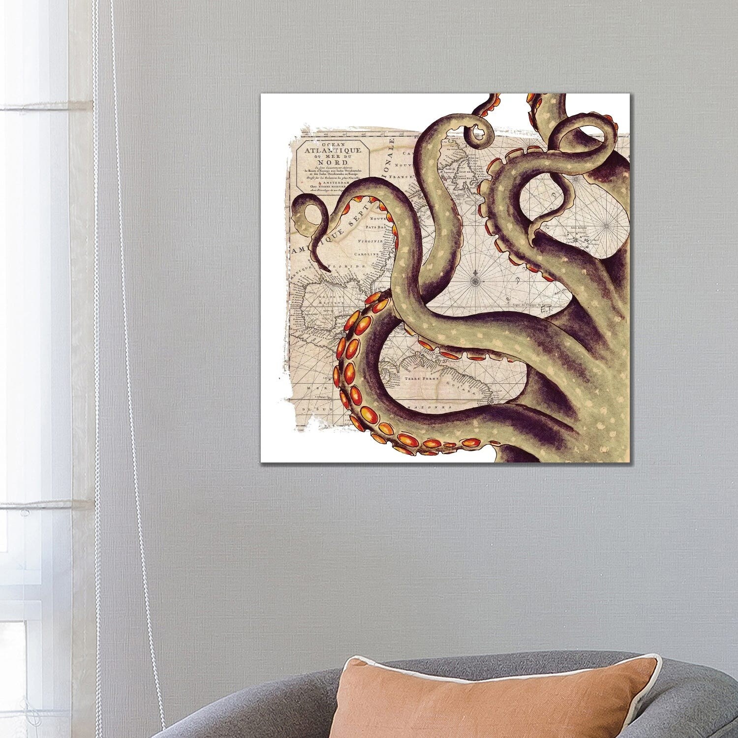 iCanvas "Tentacles Octopus Grunge Watercolor Nautical Map" by Seven Sirens Studios