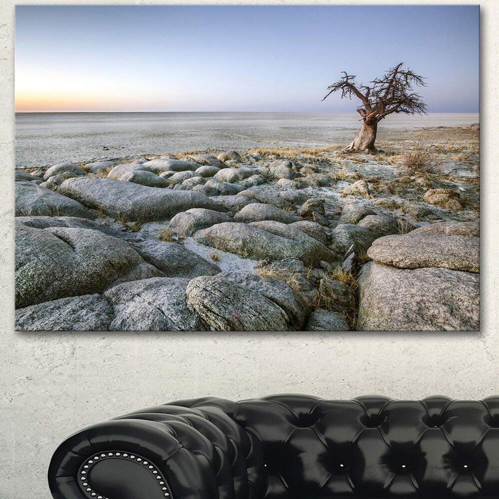 Designart "Baobab Tree on Rocky Terrain" Landscape Wall Art Print Canvas - Green