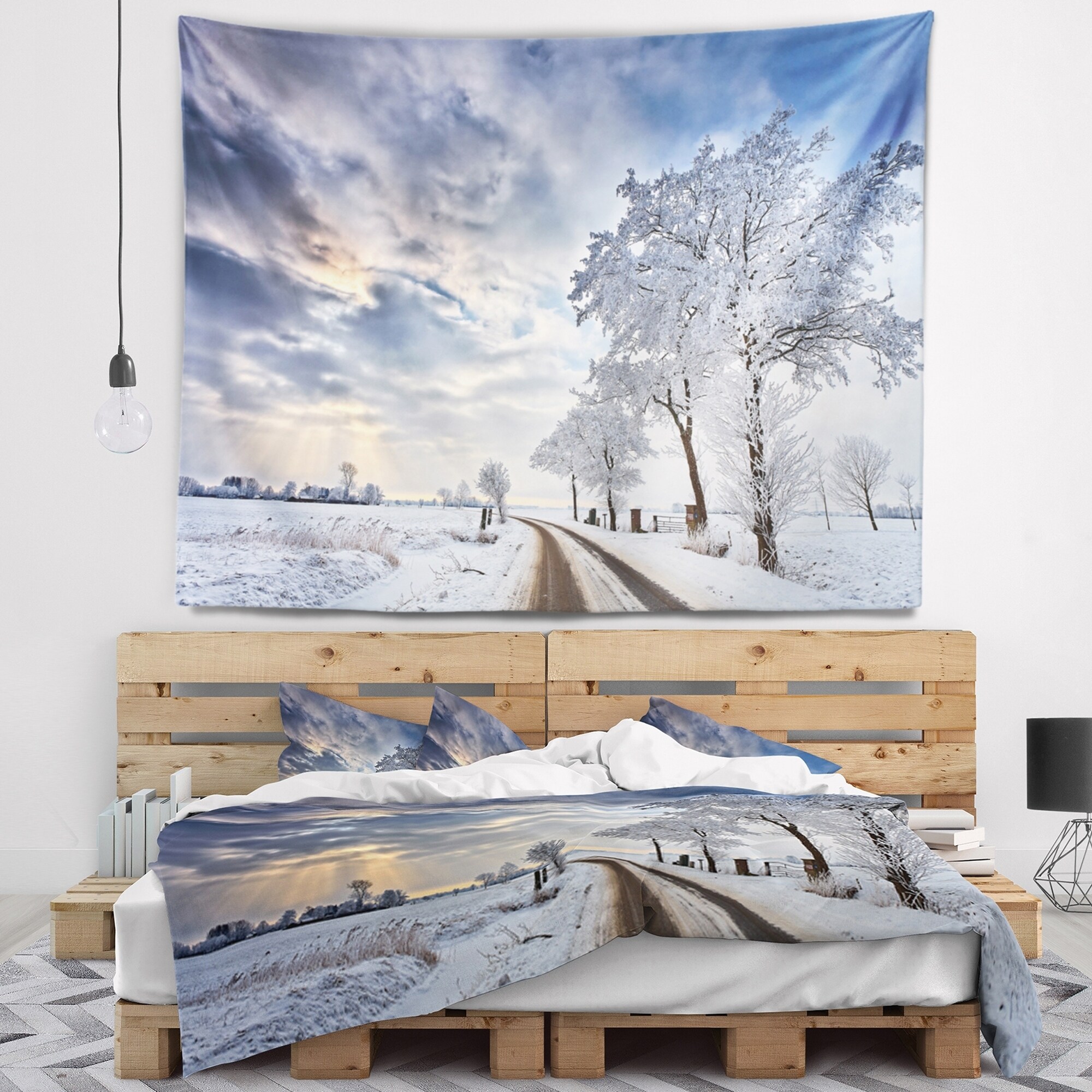 Designart 'Cloudscape in White Winter Terrain' Landscape Wall Tapestry