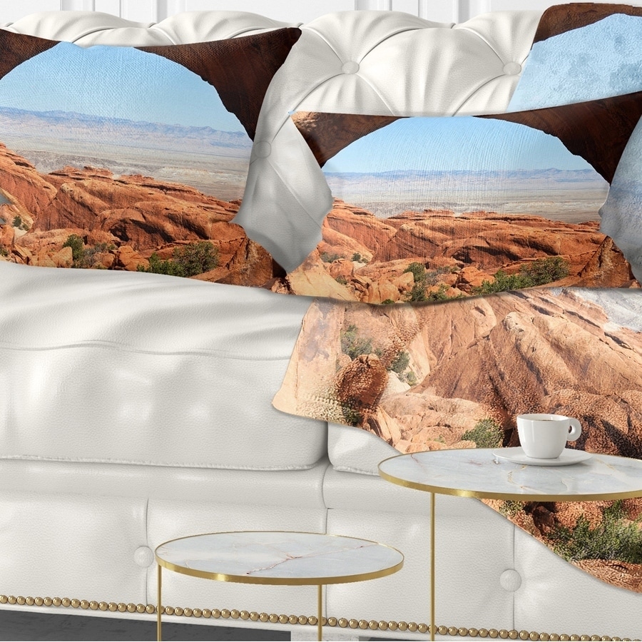 Designart 'Huge Arch into Rocky Terrains' Landscape Printed Throw Pillow