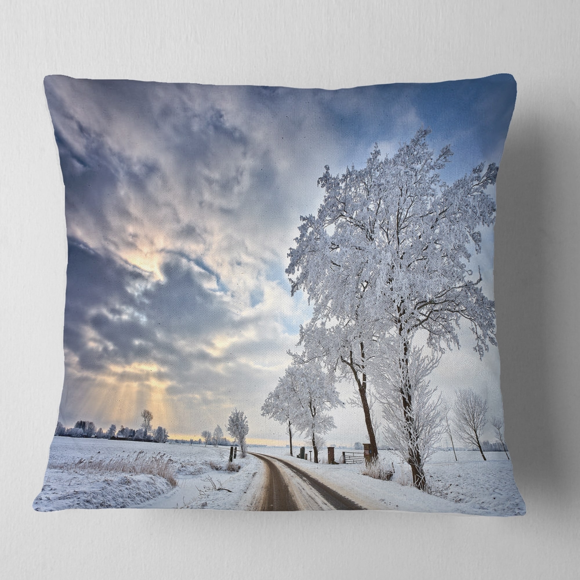 Designart 'Cloudscape in White Winter Terrain' Landscape Printed Throw Pillow