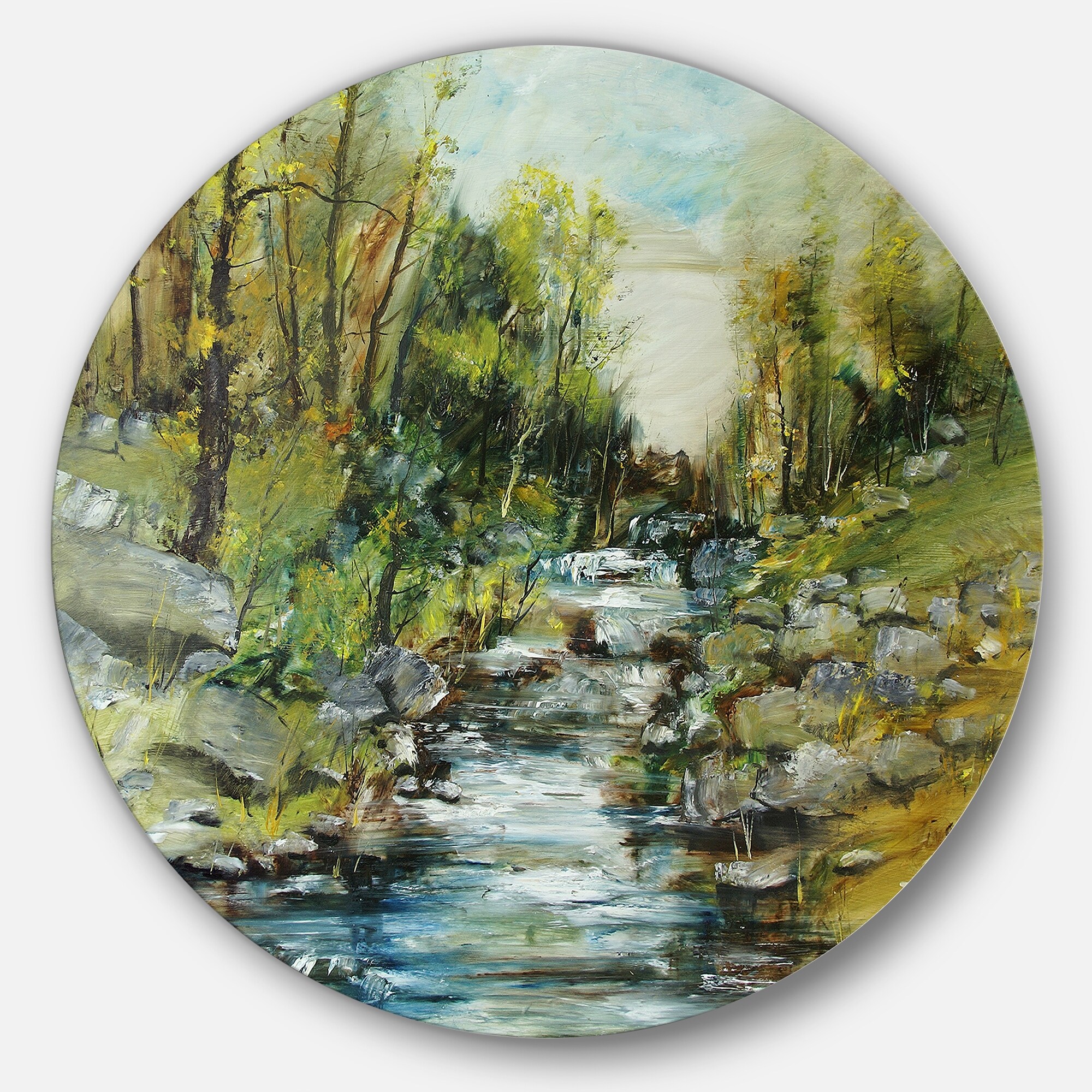 Designart 'Rocky Terrain with Creek' Landscape Large Disc Metal Wall art