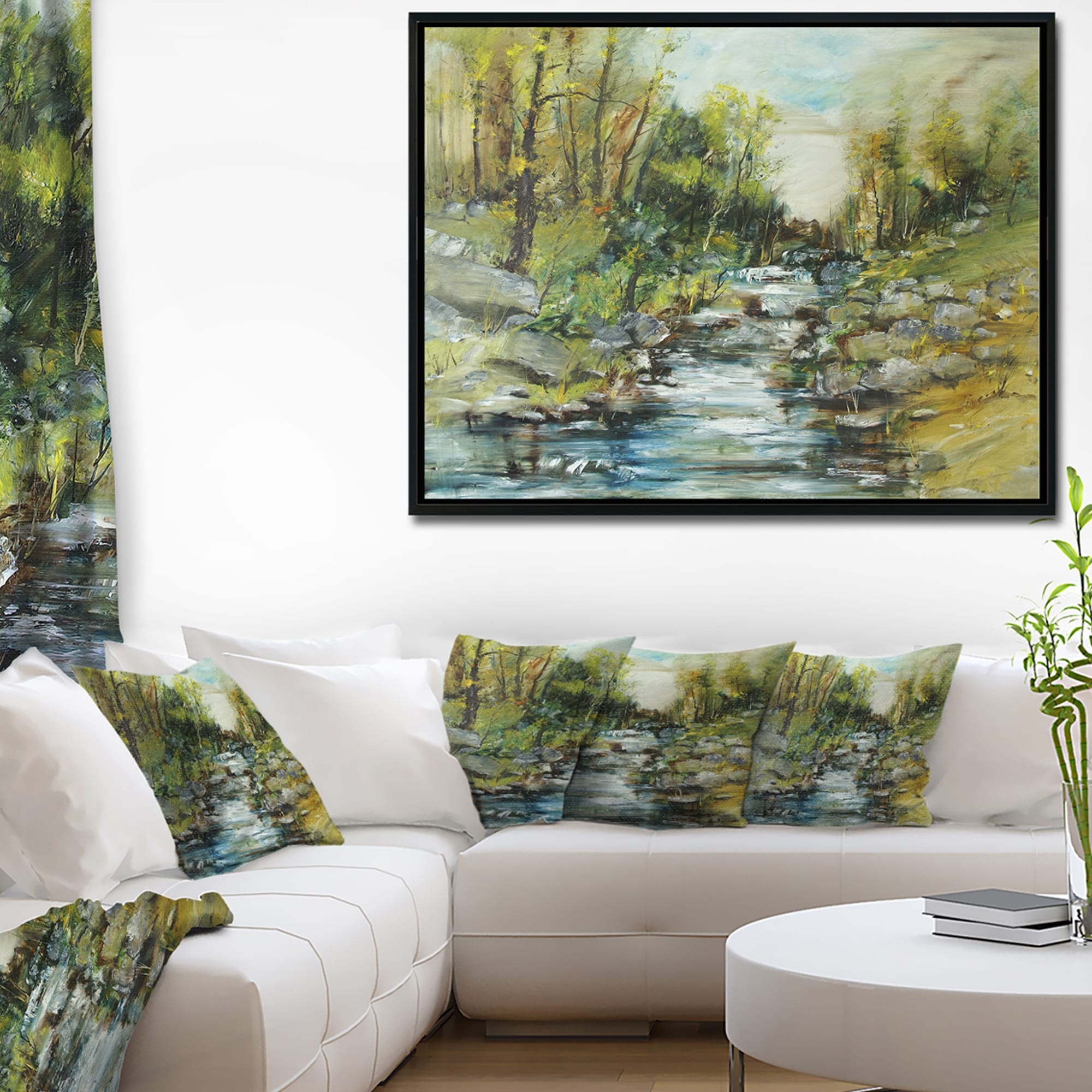 Designart "Rocky Terrain with Creek" Landscape Framed Canvas Print