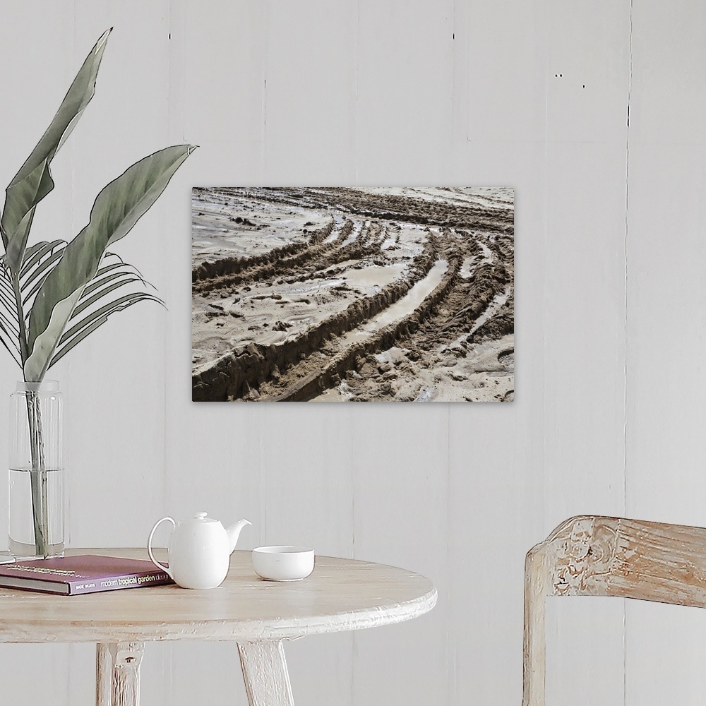 "Deep tire tracks imprinted on a muddy terrain" Canvas Wall Art