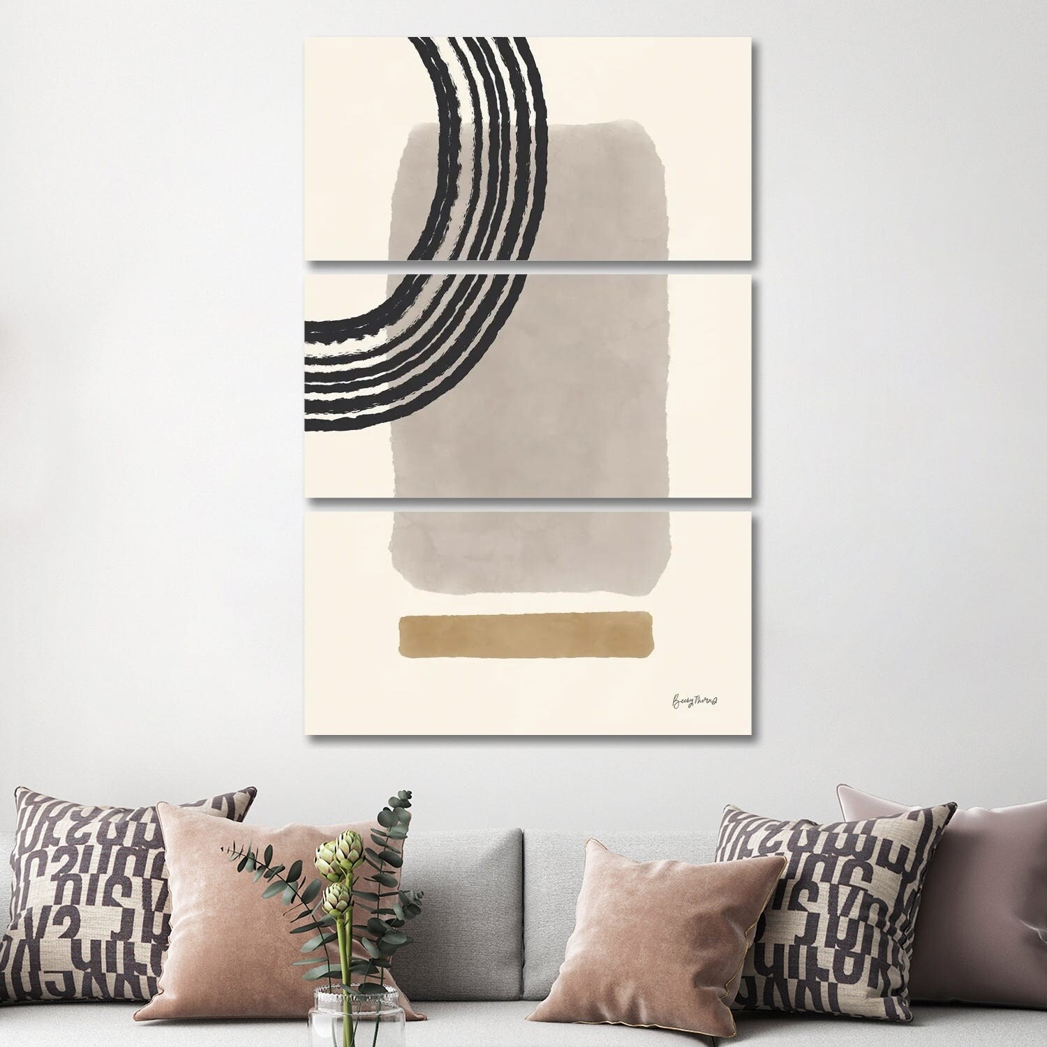 iCanvas "Geo Abstract III Neutral Pink" by Becky Thorns 3-Piece Canvas Wall Art Set