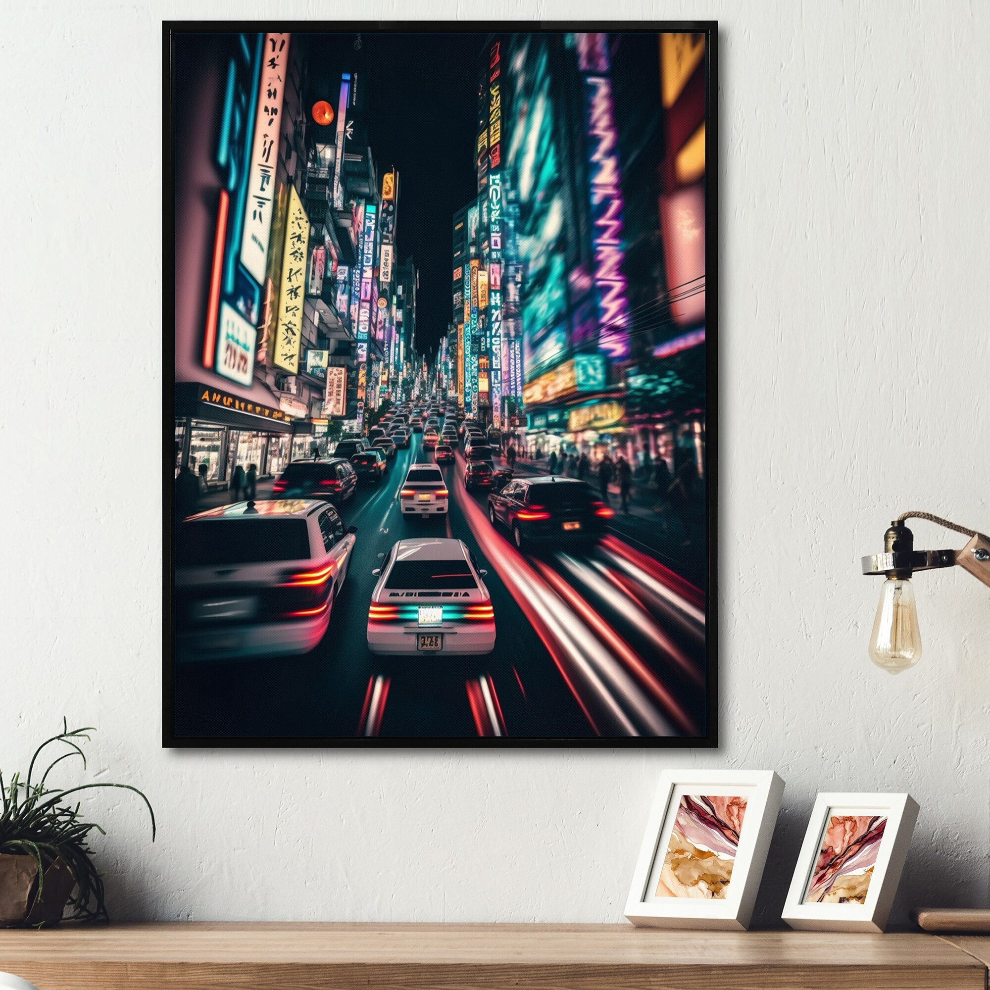Designart "Futuristic Tokyo Neon" Cityscapes Framed Canvas Art Print