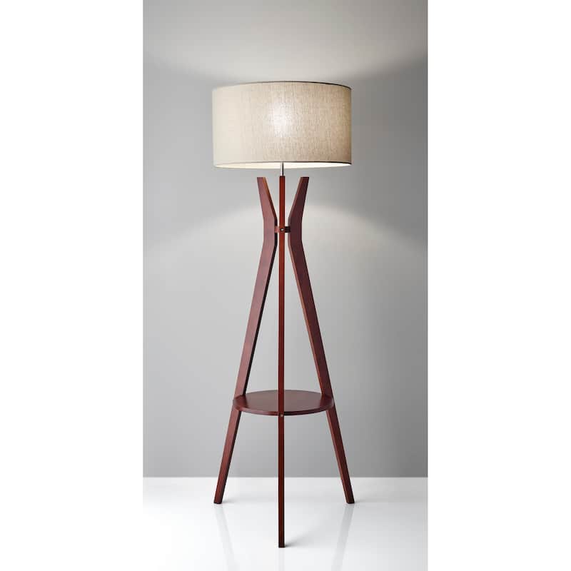 Adesso Bedford Solid Walnut Wood Tripod Shelf Floor Lamp