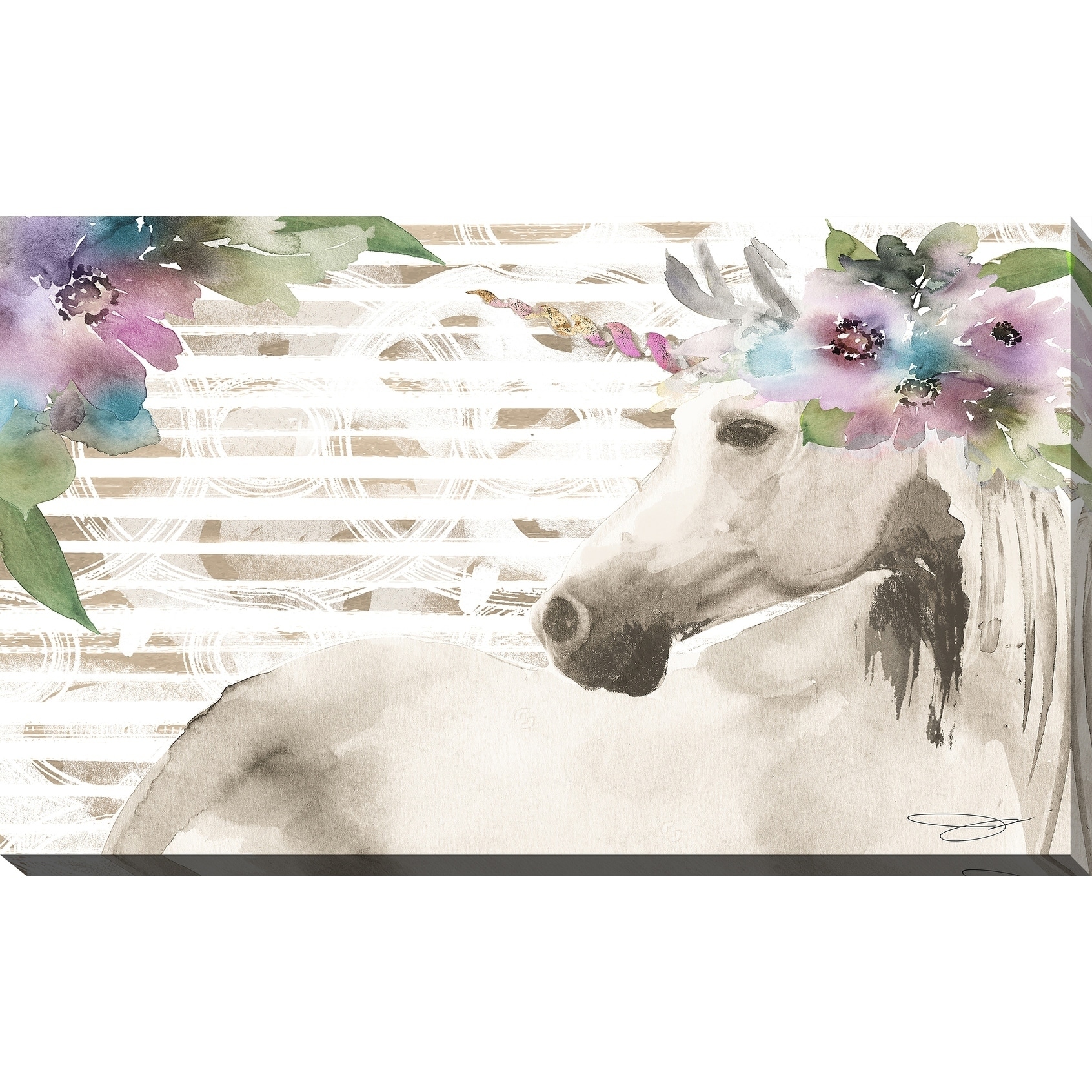 Marmont Hill - Handmade Rose Bloom Unicorn Print on Wrapped Canvas