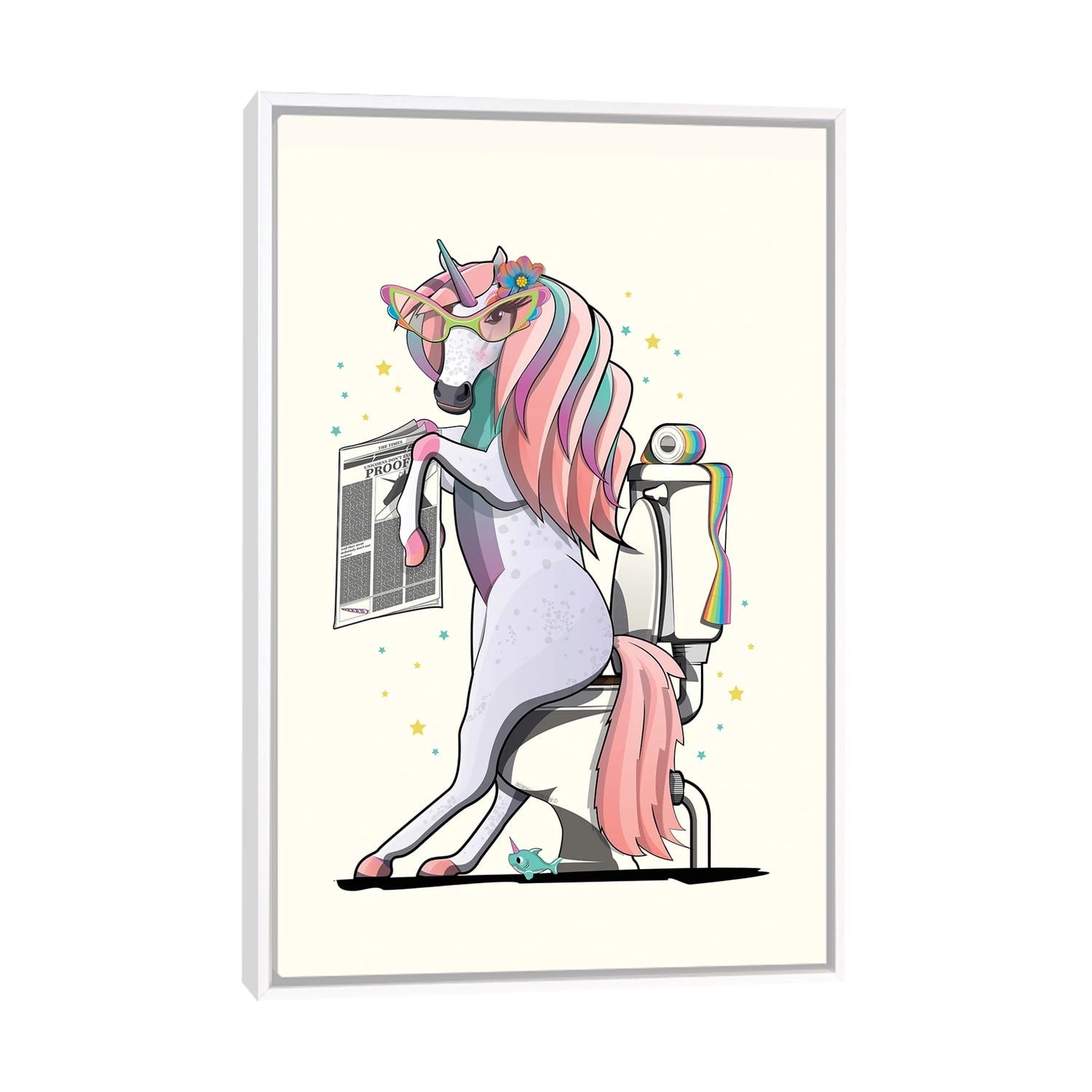 iCanvas "Unicorn On the Toilet" by WyattDesign Framed