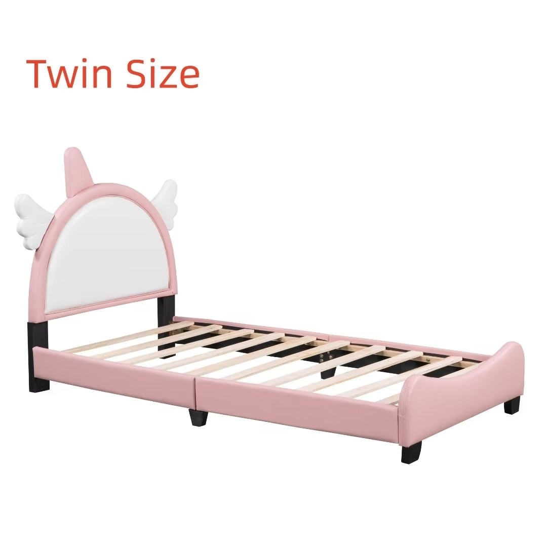 Twin size Upholstered Bed With Unicorn Shape Headboard