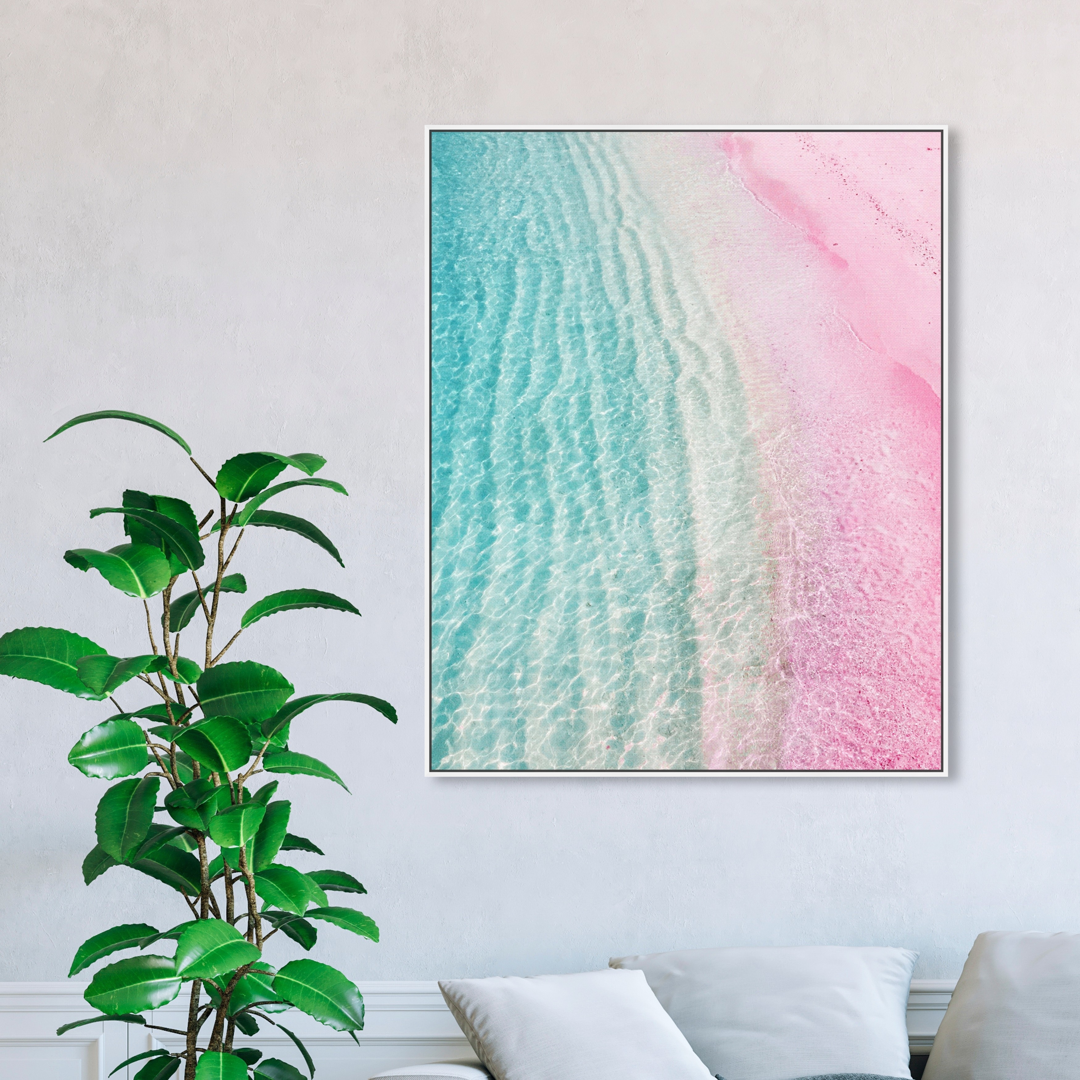 Oliver Gal 'Unicorn Beach' Nautical and Coastal Wall Art Framed Canvas Print Coastal - Pink, Blue