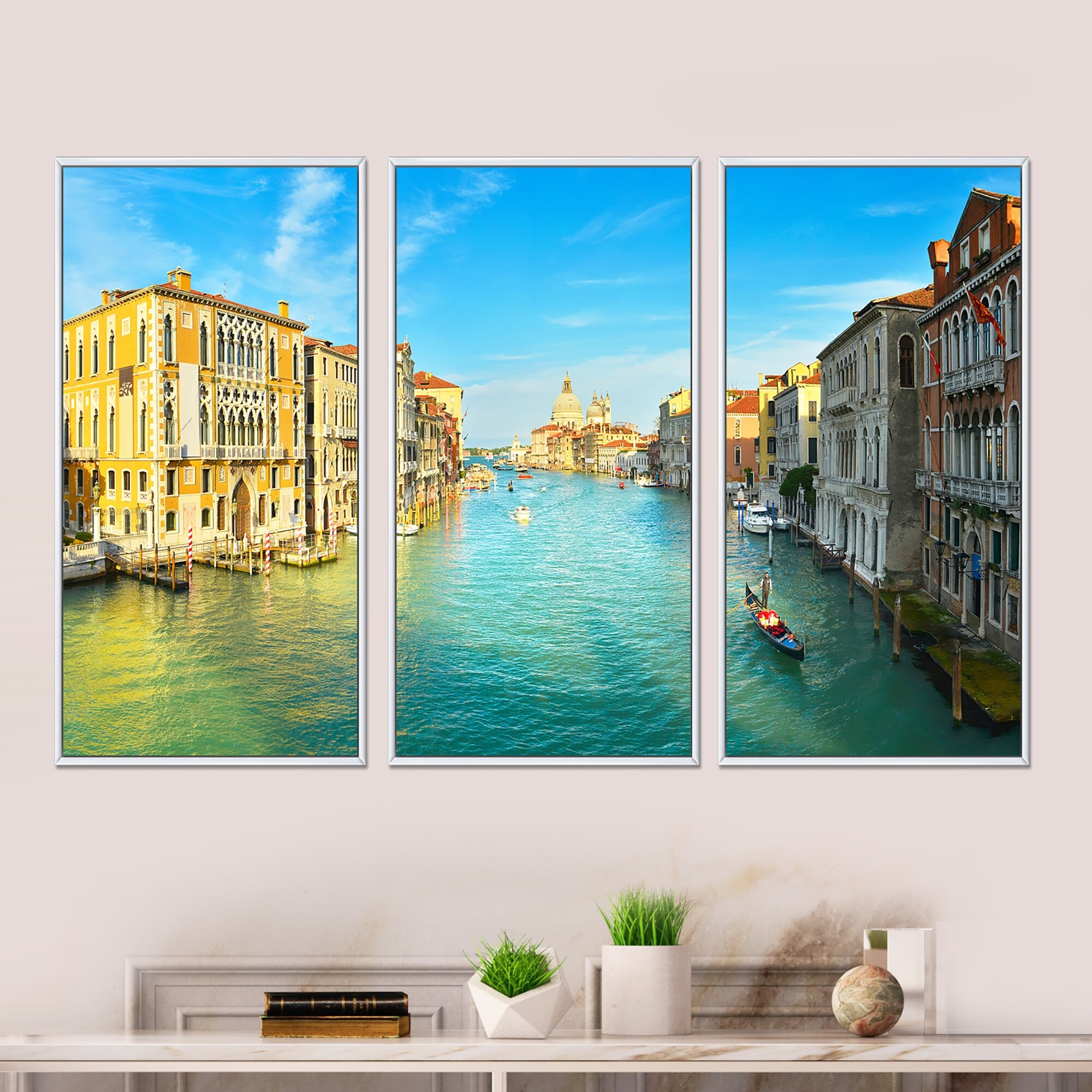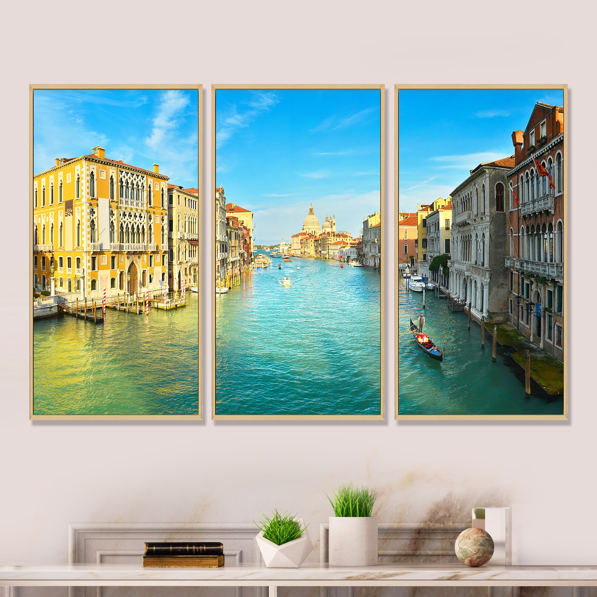 Designart "Vibrant Evening Venice Italy" Cityscape Framed Art Set of 3 - 4 Colors of Frames