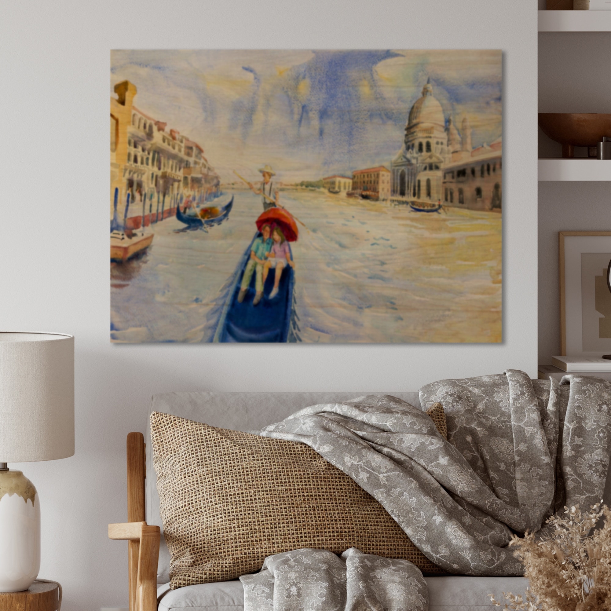 Designart 'Grand Canal Venice Italy' French Country Wood Wall Art Décor - Natural Pine Wood