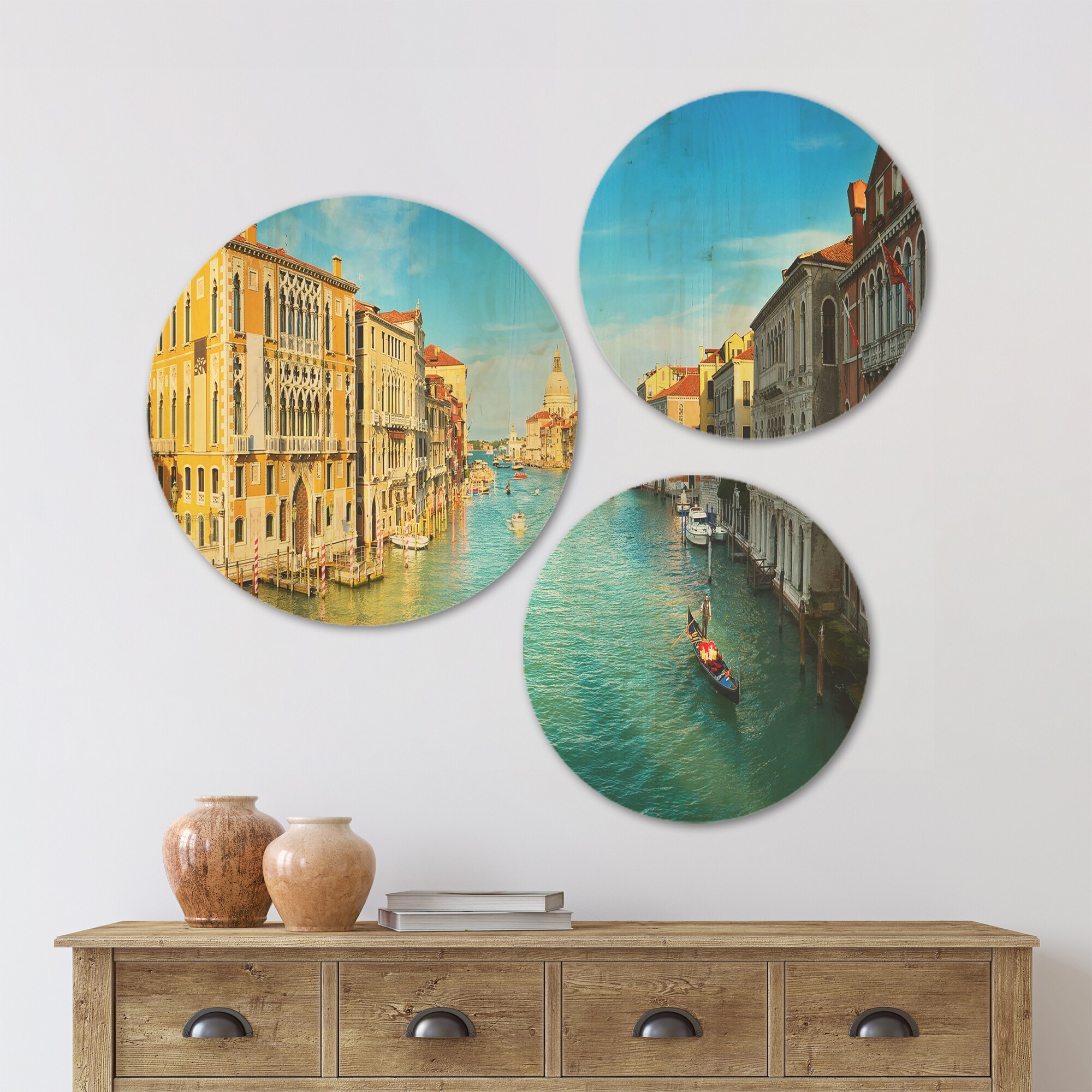 Designart 'Vibrant Evening Venice Italy' Cityscape Wood Wall Art Set of 3 Circles - Multi-Color