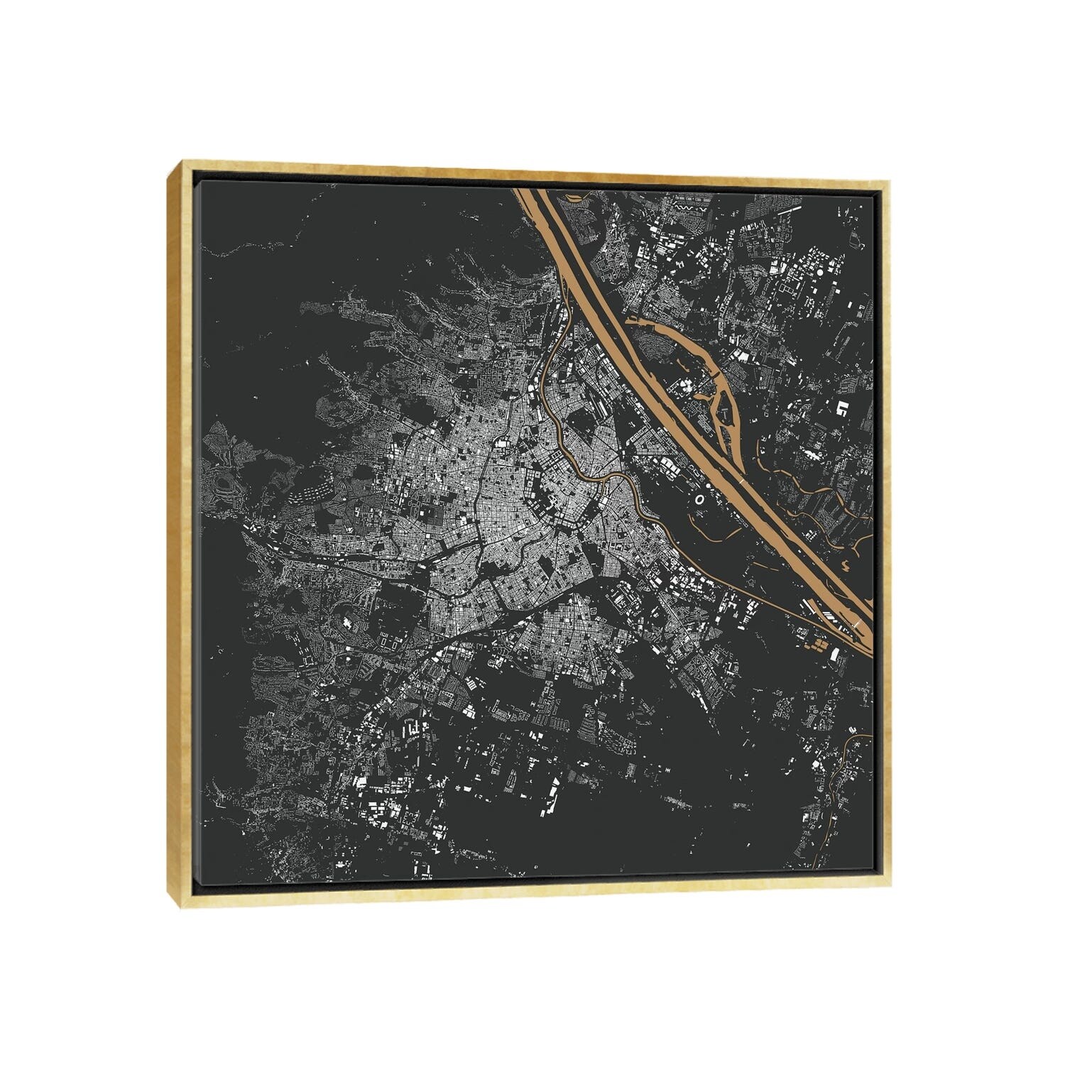 iCanvas "Vienna Urban Map (Gold)" by Urbanmap Framed Canvas Print