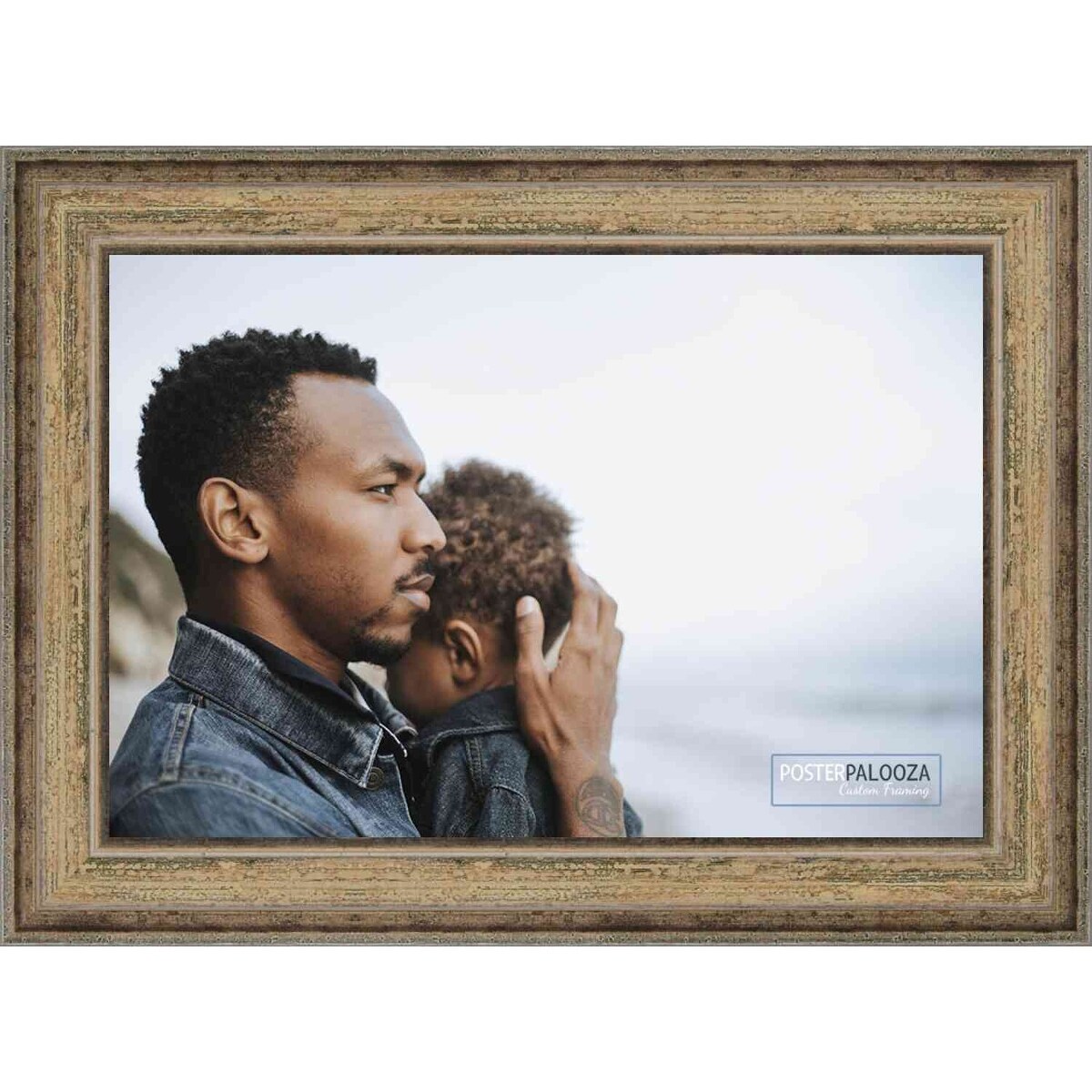 8x24 Frame Ornate Metallic Bronze Wood Picture Frame with UV Acrylic, Foam Board Backing, & Wall Hanging Hardware