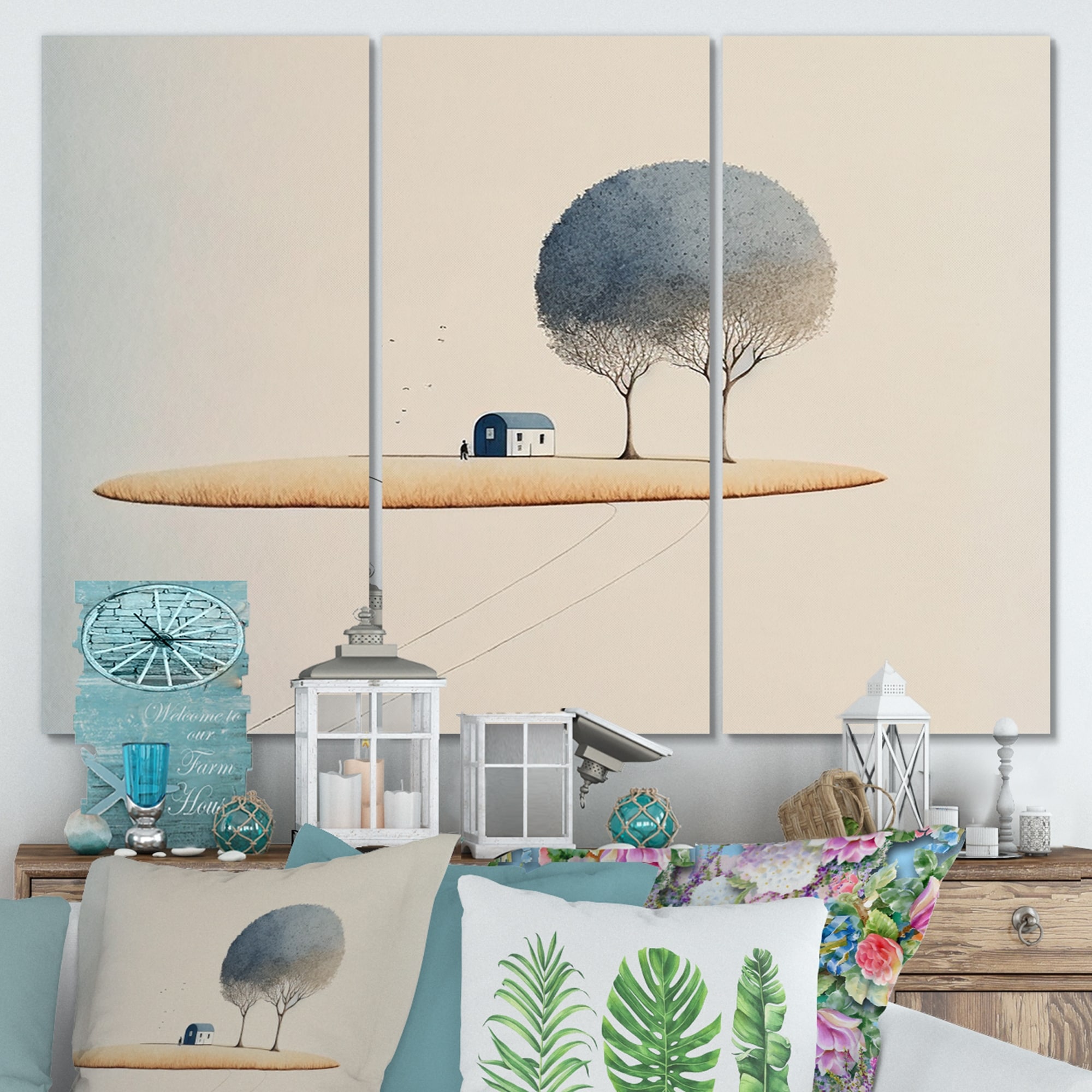 Designart "Majestic Watercolour Tree With Little Countryhouse I" Landscape Forest Canvas Wall Art Print