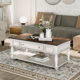 Two Tone Retro Cocktail Table Coffee Table Easy Assembly Movable with Caster Wheels for Livingroom, Antique White