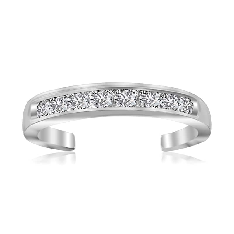 Sterling Silver Rhodium Finished Toe Ring with White Tone Cubic Zirconia Accents