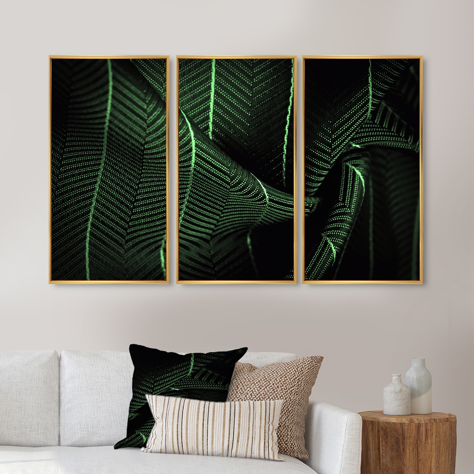 Designart "Deep Green Silk Fabric With A Thin White Stripe I" Patterned Framed Art Set of 3 - 4 Colors of Frames