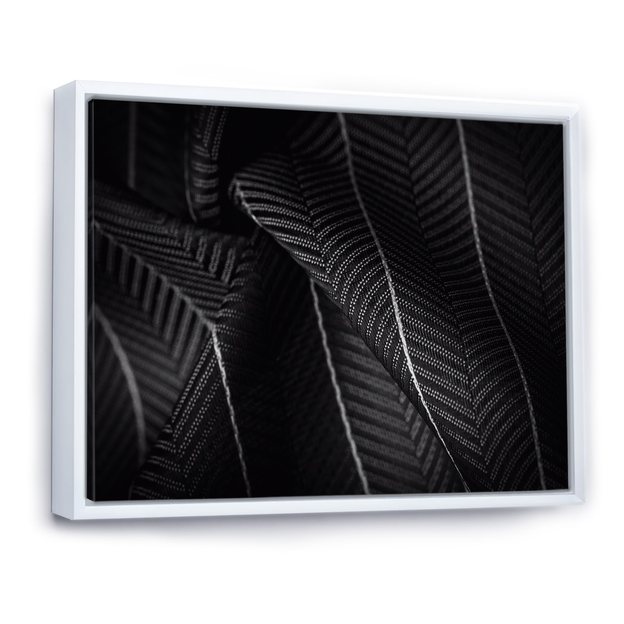 Designart "Grey Silver Silk Fabric With A Thin White Stripe" Patterned Framed Art Print