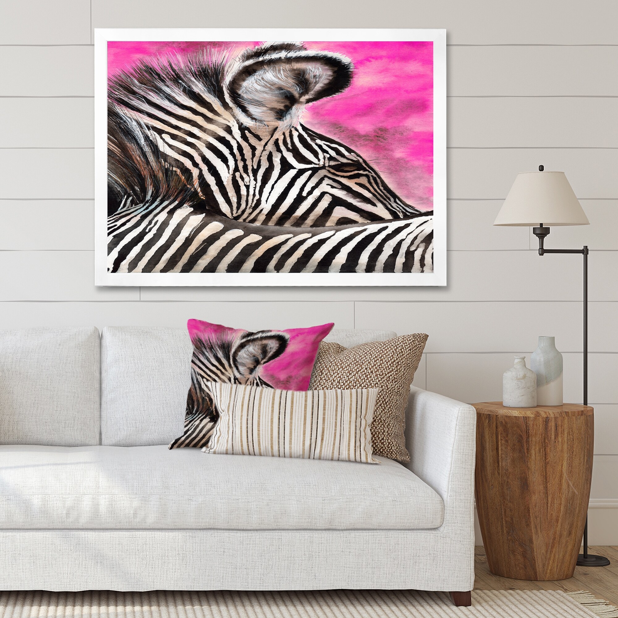 Designart "Zebra With Contrasting Black And White Stripes IV" Traditional Framed Canvas Wall Art Print