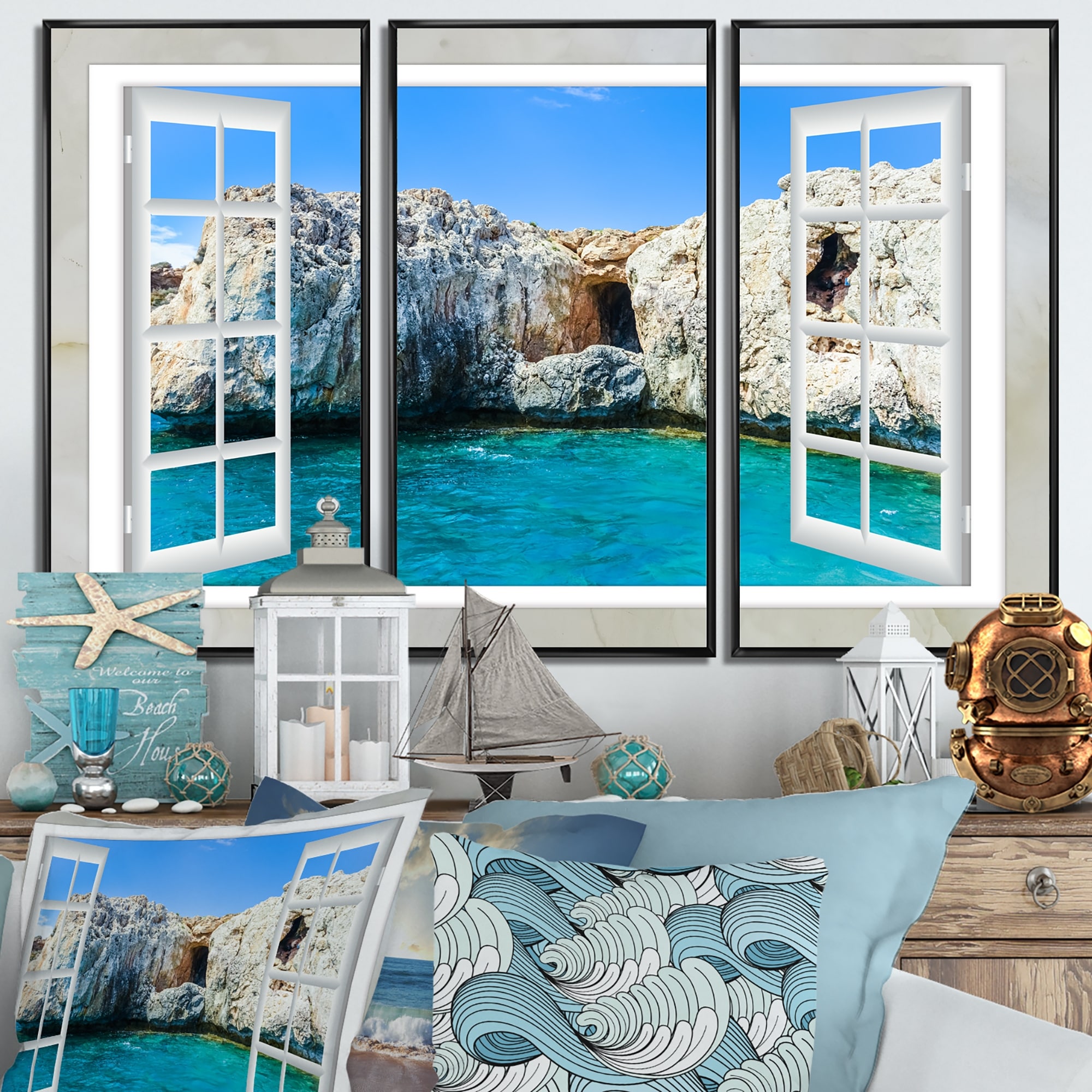 Designart "Open Window to Gorgeous Seashore" Modern Seascape Framed Canvas Artwork Print