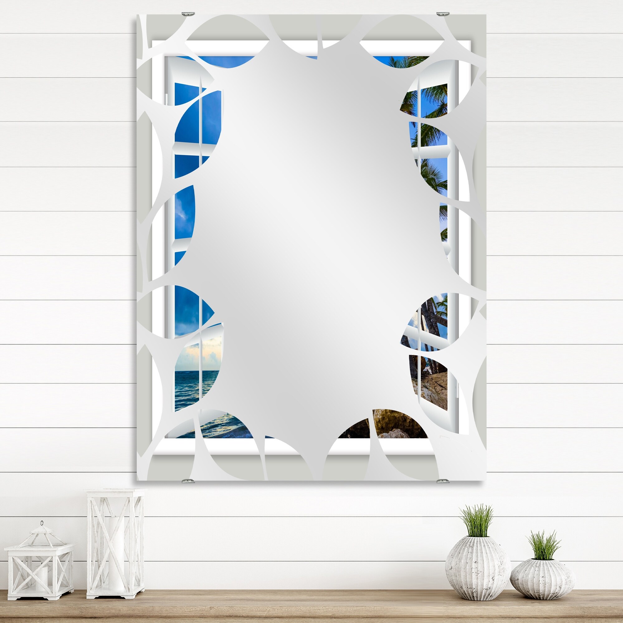 Designart 'Window Open to Cloudy Blue Sky' Landscape Printed Wall Mirror
