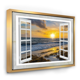 Designart "Open Window to Bright Yellow Sunset" Modern Seascape Framed Canvas Artwork Print