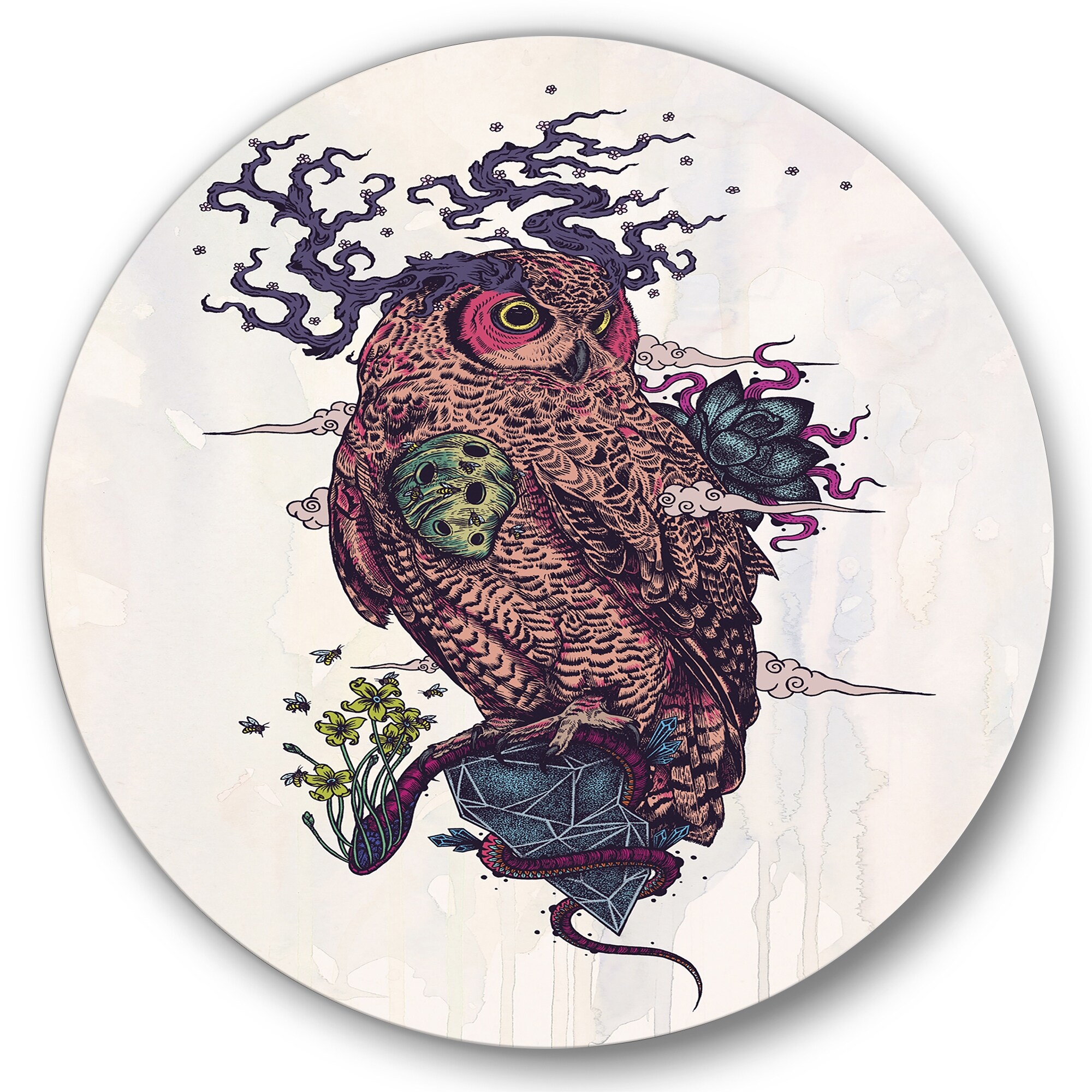 Designart 'Diamond Owl Wisdom' Modern & Contemporary Metal Circle Wall Art