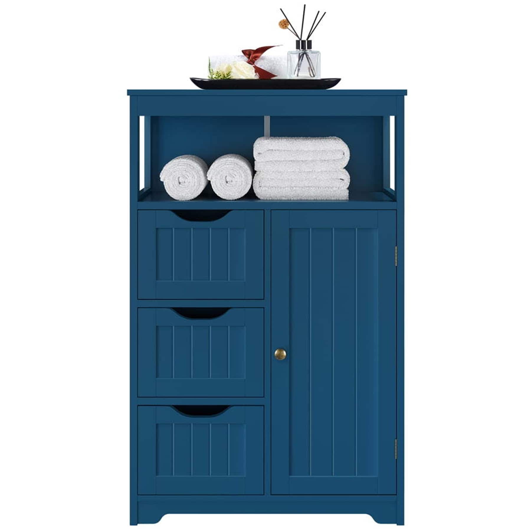 Bathroom Floor Storage Cabinet, Wooden Freestanding Storage Cabinet, Side Storage Organizer with 1 Cupboard and 3 Drawers