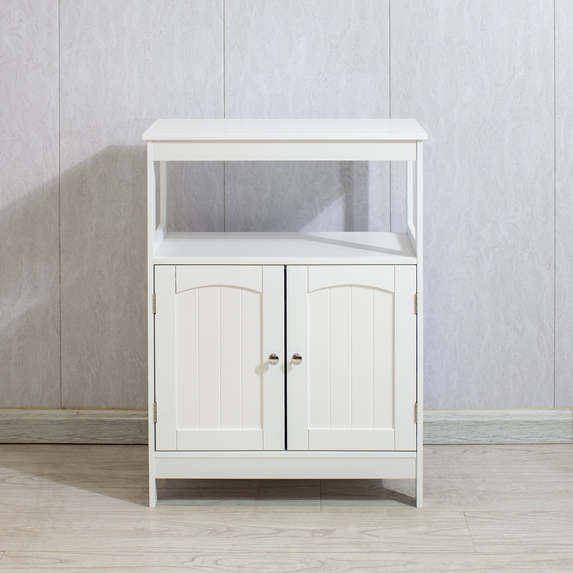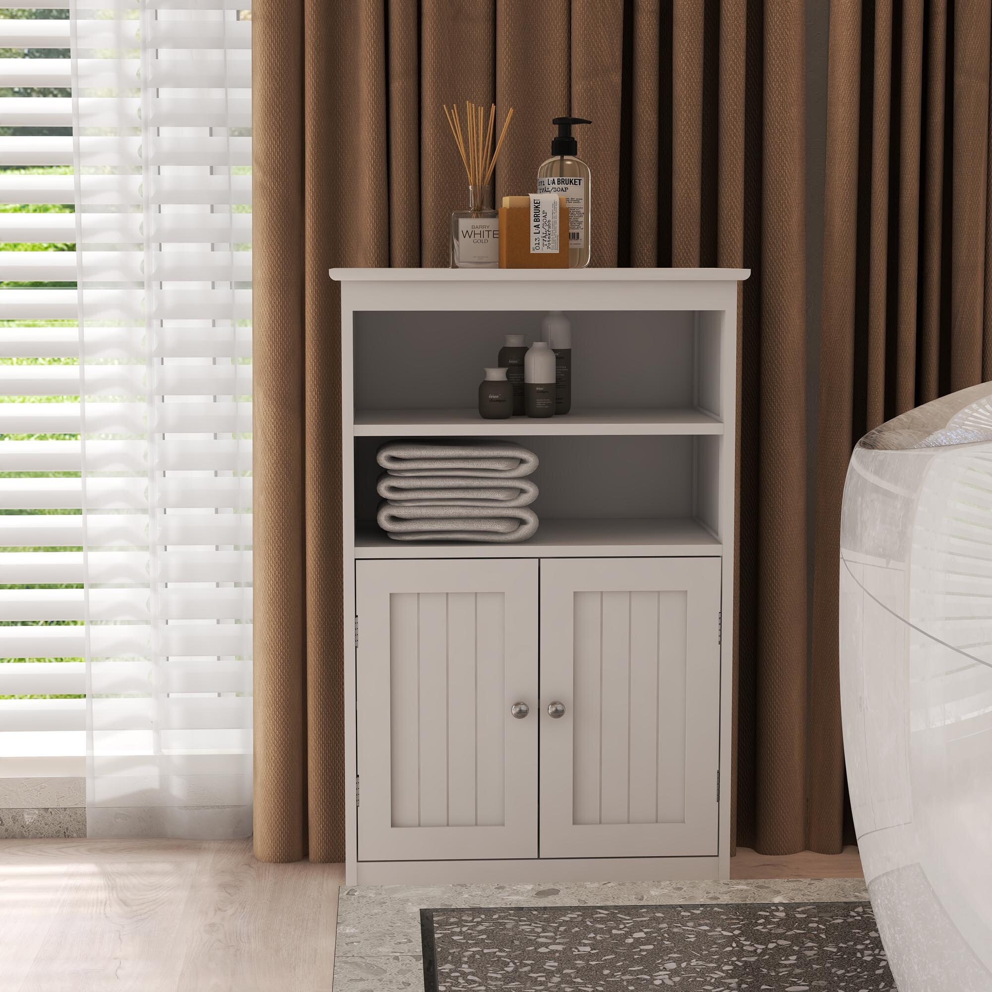 Floor Storage Cabinet, Wooden FreeStanding Storage Organizer with 2 Doors and Shelves, White