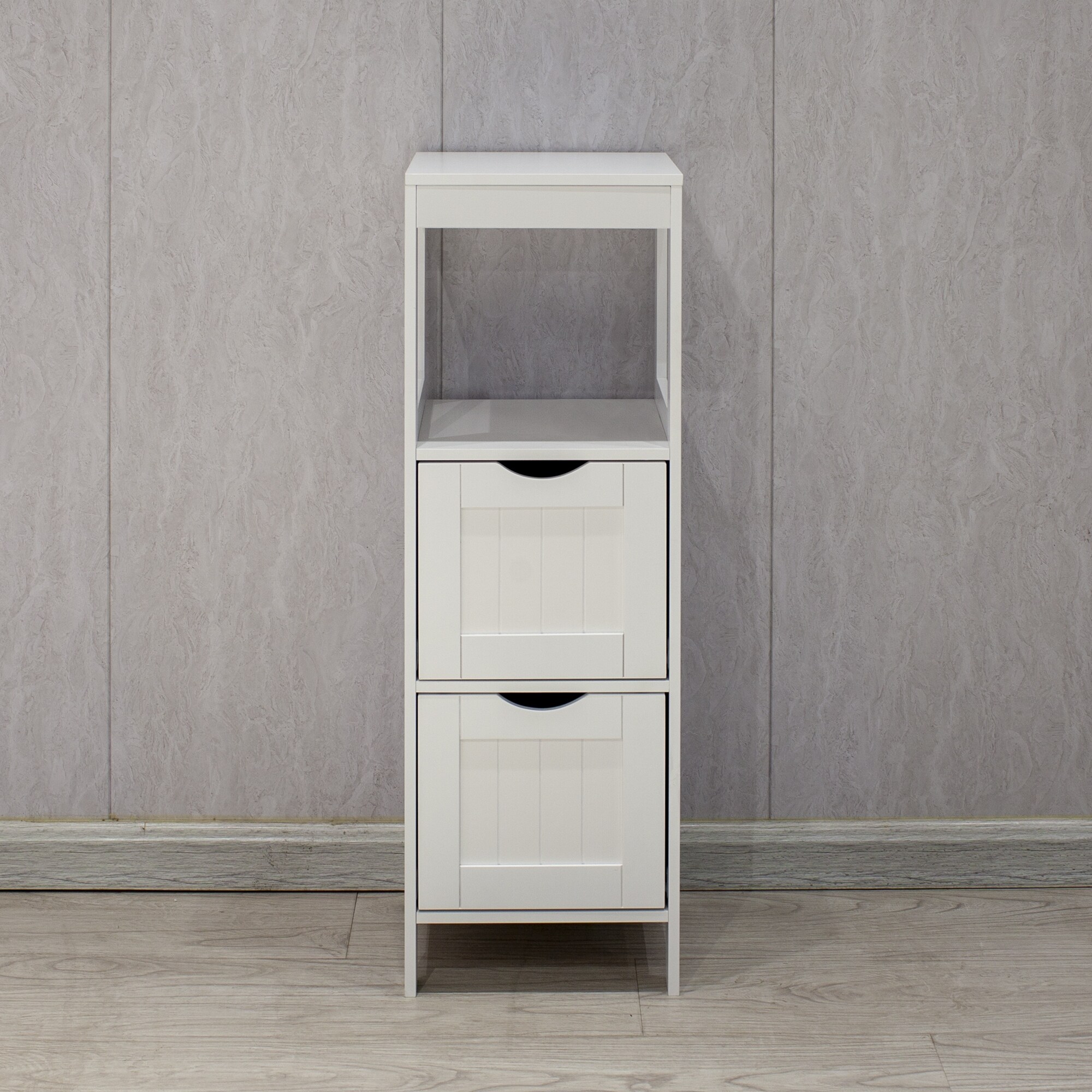 White Floor Cabinet with 2 Drawer Wooden Storage Cabinet Multifunctional Bathroom Storage Organizer Rack Stand