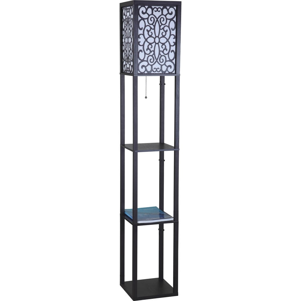 SINTECHNO Black Wooden Shelf 63" Column Floor Lamp