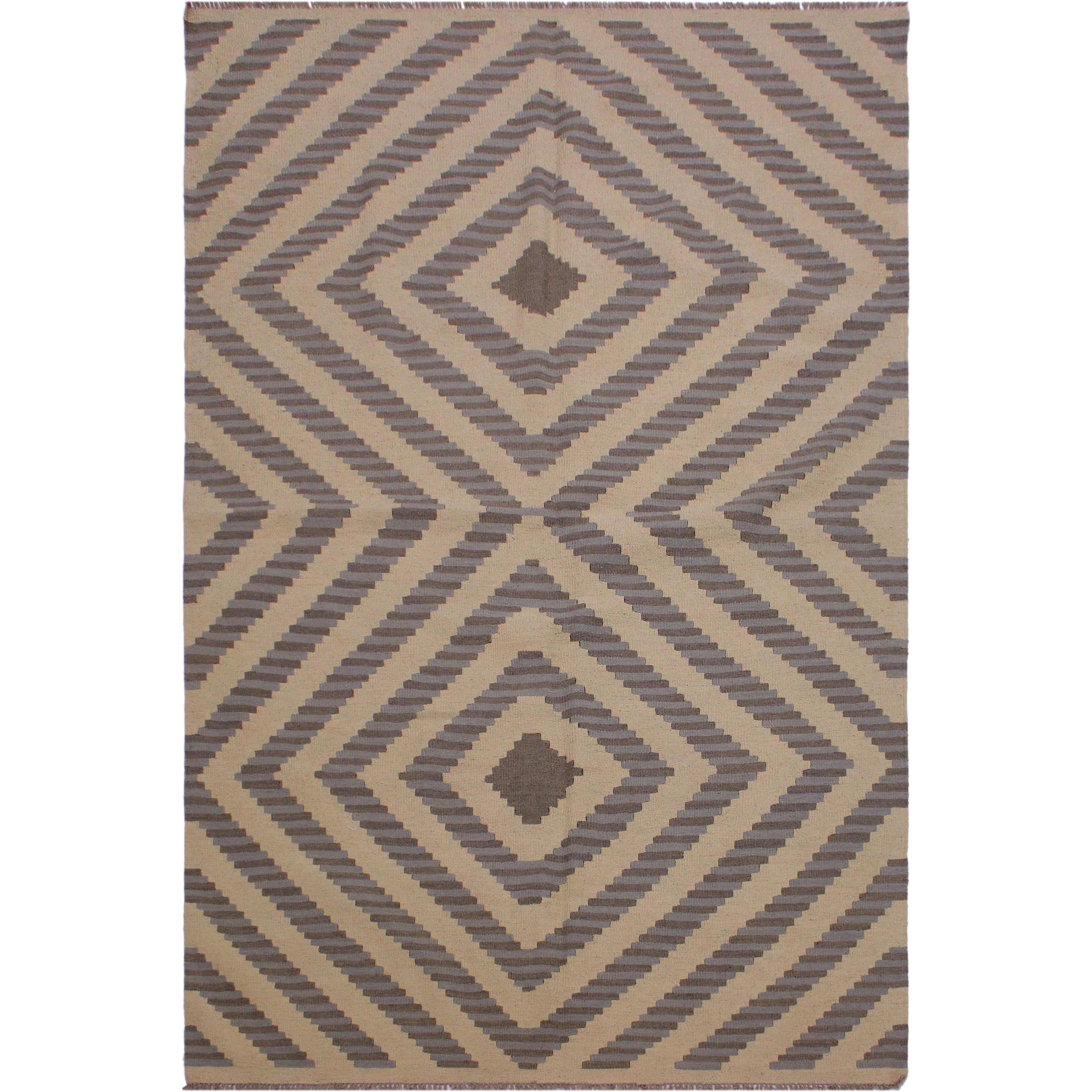 Sapp Ivory/Grey Hand-Woven Kilim Wool Rug - 5'1 x 7'2 - 5'1" x 7'2" - 5'1" x 7'2"