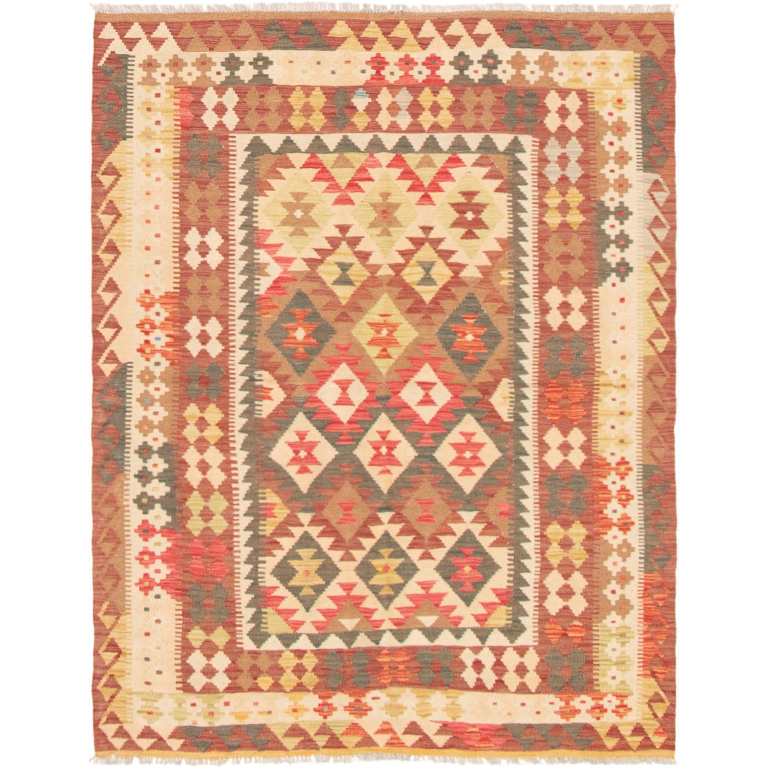 Tribal Geometric Kilim Oriental Area Rug Hand-woven Wool Carpet - 5'1" x 6'4"