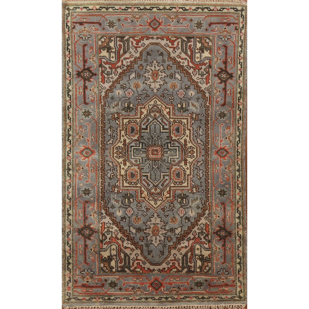 Gray Geometric Traditional Heriz Oriental Rug Hand-knotted Wool Carpet - 3'0" x 5'1"