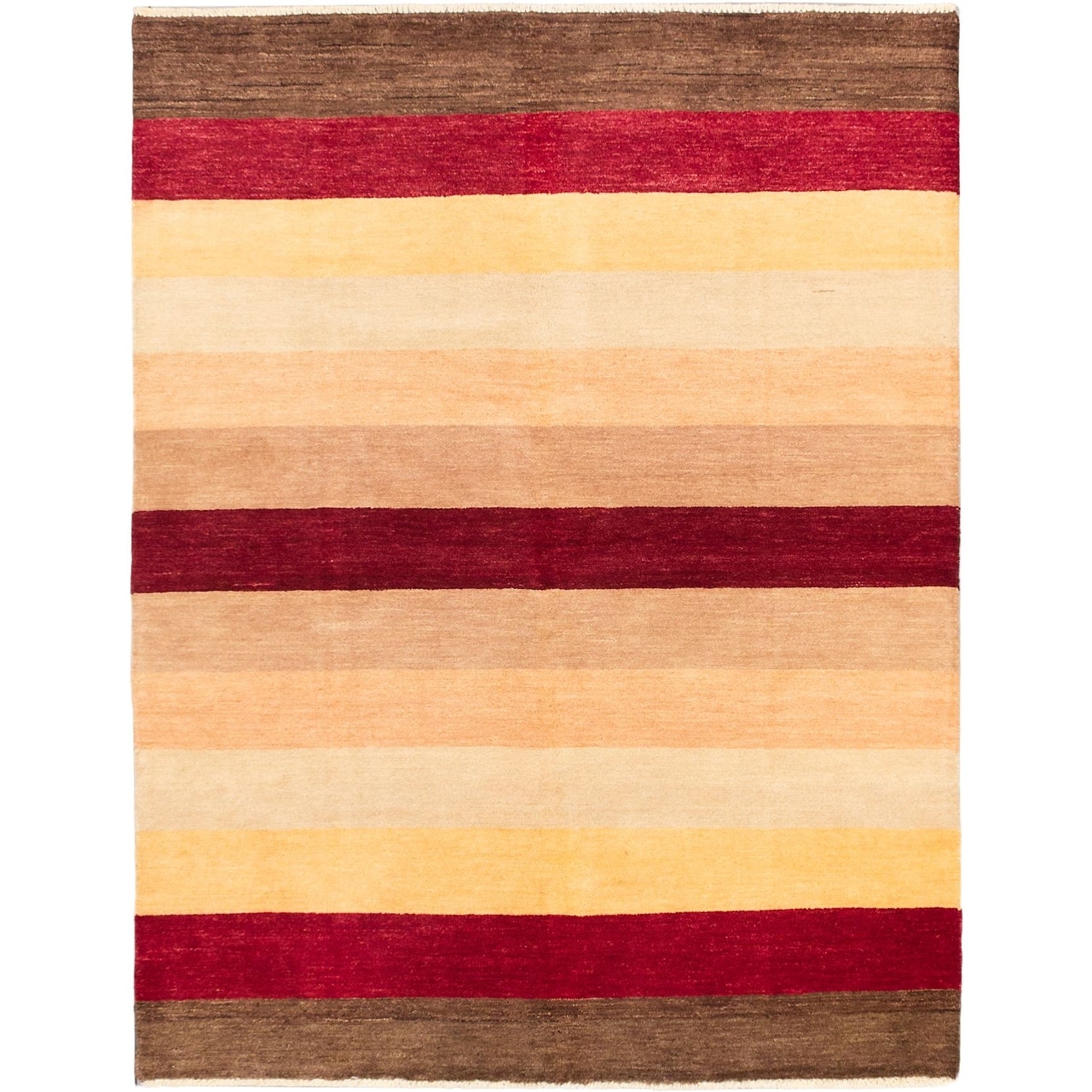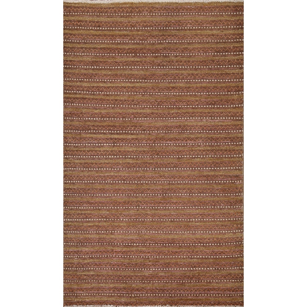 Brown Stripe / Modern Gabbeh Rug Handmade Wool Carpet - 2'11" x 5'1"