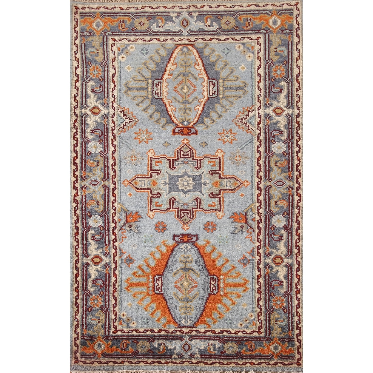 Light Blue Kazak Oriental Accent Rug Wool Carpet - 3'0"x 5'1"