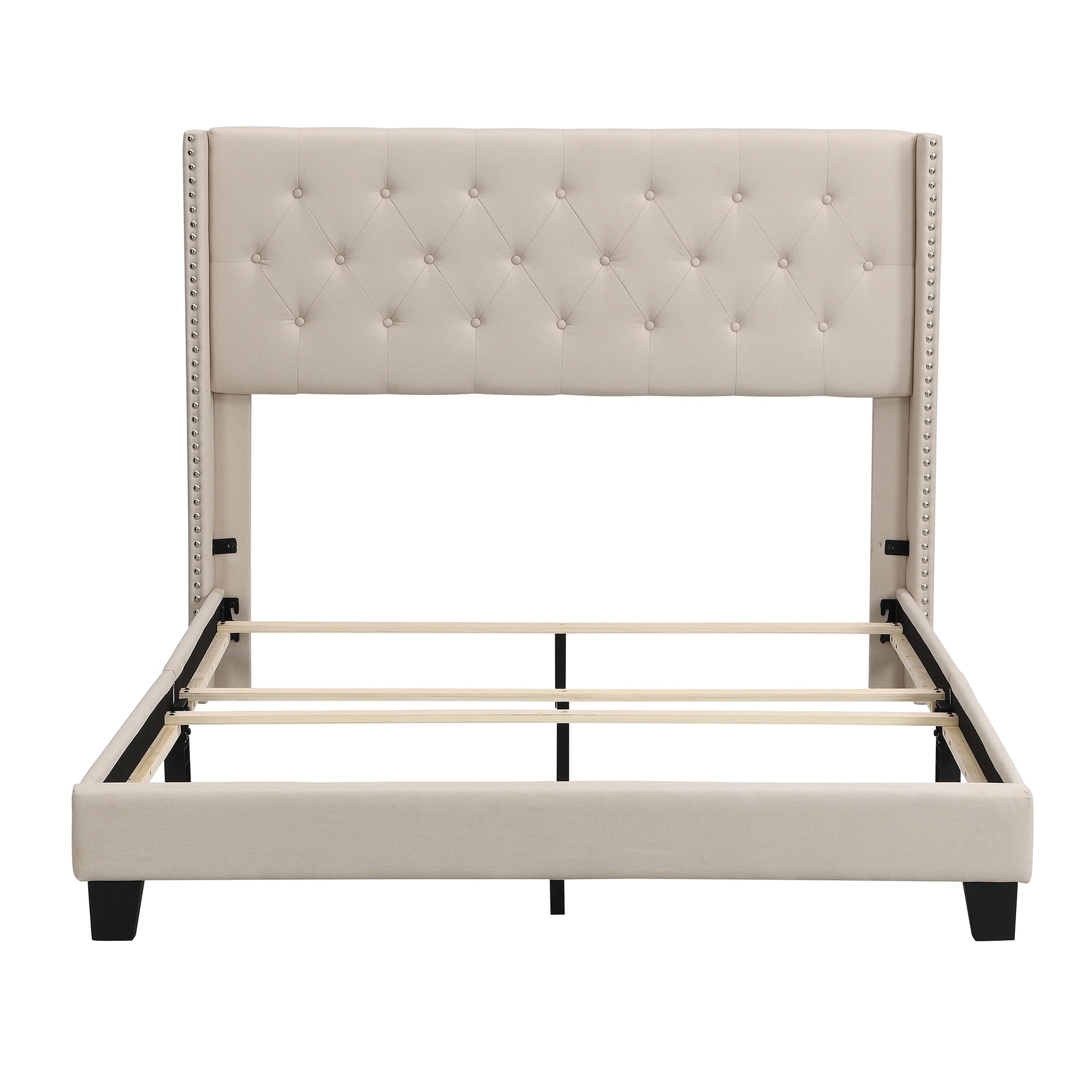 Queen Size Nailhead Trim Upholstered Platform Bed with Tufted Wingback Headboard, 84.8''L*65.3''W*51.2''H, 62LBS